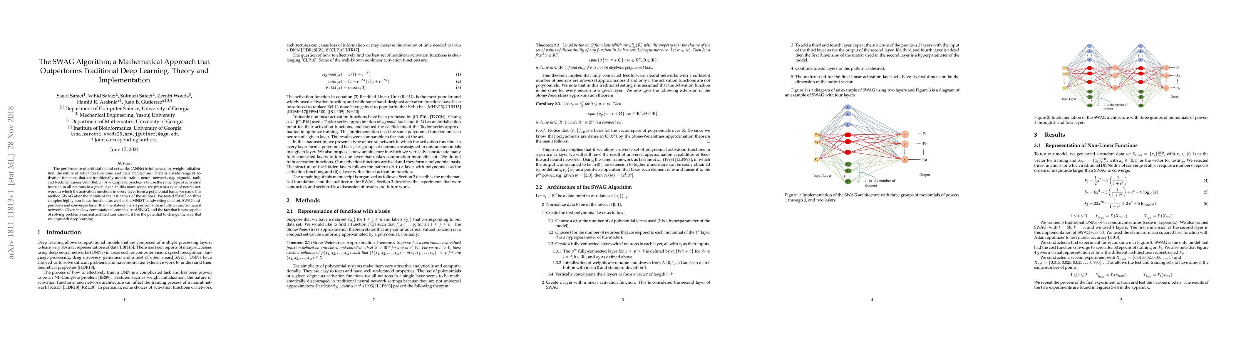 The performance of artificial neural networks (ANNs) is influenced by weight initialization, the nature of activation functions, and their architecture. There is a wide range of activation functions that are traditionally used to train a neural network, e.g. sigmoid, tanh, and Rectified Linear Unit (ReLU). A widespread practice is to use the same type of activation function in all neurons in a given layer. In this manuscript, we present a type of neural network in which the activation functions in every layer form a polynomial basis; we name this method SWAG after the initials of the last names of the authors. We tested SWAG on three complex highly non-linear functions as well as the MNIST handwriting data set. SWAG outperforms and converges faster than the state of the art performance in fully connected neural networks. Given the low computational complexity of SWAG, and the fact that it was capable of solving problems current architectures cannot, it has the potential to change the way that we approach deep learning.