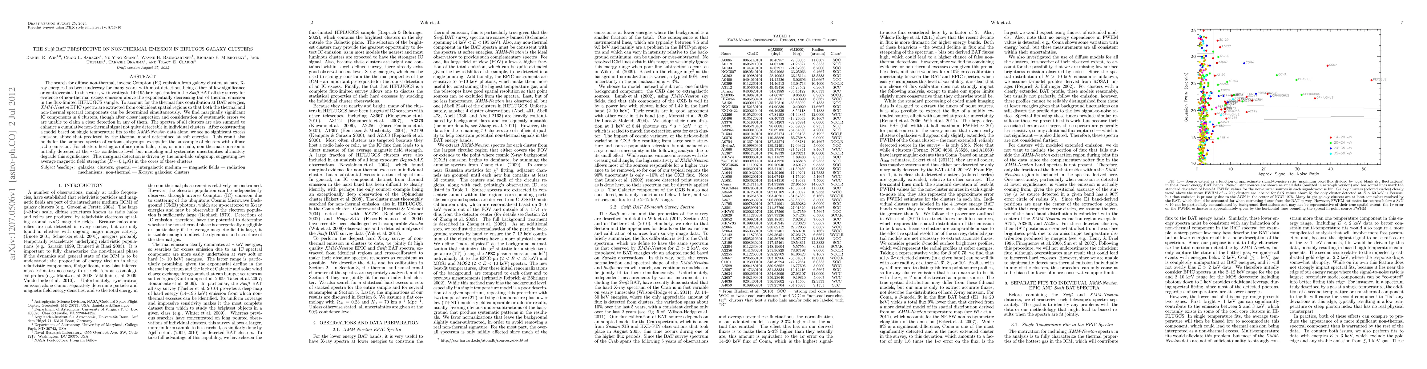 The search for diffuse non-thermal, inverse Compton (IC) emission from galaxy clusters at hard X-ray energies has been underway for many years, with most detections being either of low significance or controversial. In this work, we investigate 14-195 keV spectra from the Swift Burst Alert Telescope (BAT) all-sky survey for evidence of non-thermal excess emission above the exponentially decreasing tail of thermal emission in the flux-limited HIFLUGCS sample. To account for the thermal contribution at BAT energies, XMM-Newton EPIC spectra are extracted from coincident spatial regions so that both thermal and non-thermal spectral components can be determined simultaneously. We find marginally significant IC components in six clusters, though after closer inspection and consideration of systematic errors we are unable to claim a clear detection in any of them. The spectra of all clusters are also summed to enhance a cumulative non-thermal signal not quite detectable in individual clusters. After constructing a model based on single-temperature fits to the XMM-Newton data alone, we see no significant excess emission above that predicted by the thermal model determined at soft energies. This result also holds for the summed spectra of various subgroups, except for the subsample of clusters with diffuse radio emission. For clusters hosting a diffuse radio halo, a relic, or a mini-halo, non-thermal emission is initially detected at the \sim5-sigma confidence level - driven by clusters with mini-halos - but modeling and systematic uncertainties ultimately degrade this significance. In individual clusters, the non-thermal pressure of relativistic electrons is limited to \sim10% of the thermal electron pressure, with stricter limits for the more massive clusters, indicating that these electrons are likely not dynamically important in the central regions of clusters.