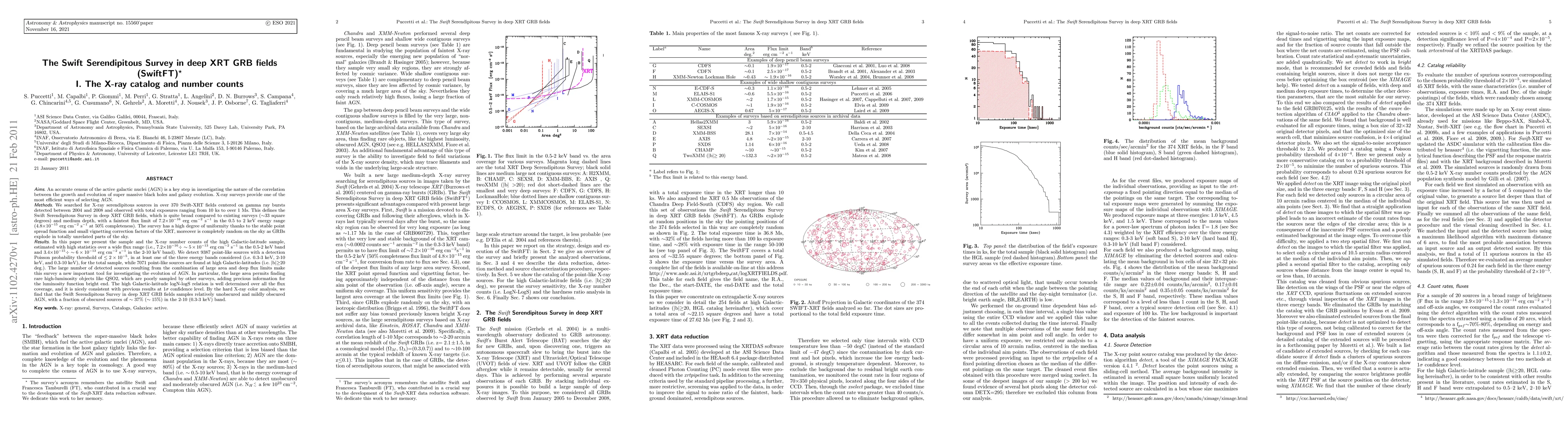 This paper presents the Swift Serendipitous Survey in deep XRT GRB fields, detecting 9387 X-ray sources across 370 fields, with 7071 at high Galactic latitudes. The survey's large area and deep flux limits provide valuable data for studying AGN evolution, particularly for rare, high-luminosity objects like QSO2.