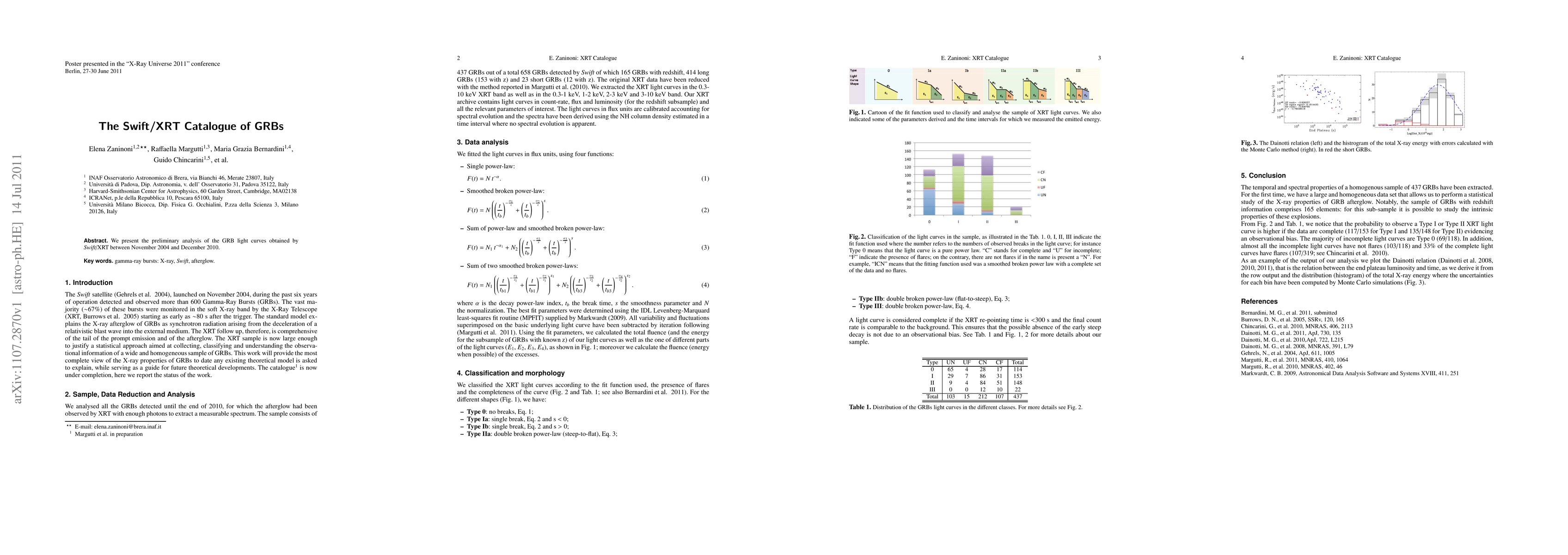 We present the preliminary analysis of the GRB light curves obtained by Swift/XRT between November 2004 and December 2010.