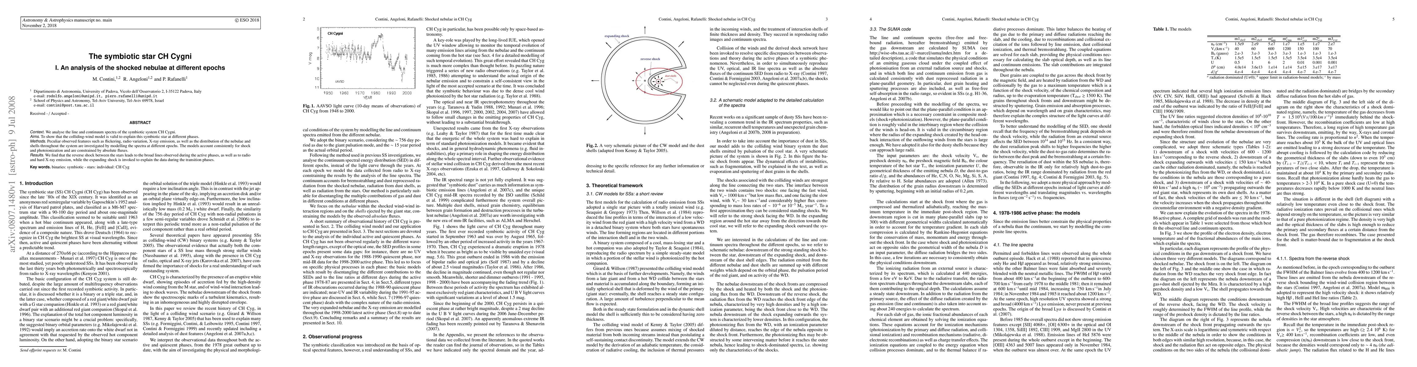 Context. We analyse the line and continuum spectra of the symbiotic system CH Cygni. Aims. To show that the colliding-wind model is valid to explain this symbiotic star at different phases. Methods. Peculiar observed features such as flickering, radio variation, X-ray emission, as well as the distribution of the nebulae and shells throughout the system are investigated by modelling the spectra at different epochs. The models account consistently for shock and photoionization and are constrained by absolute fluxes. Results. We find that the reverse shock between the stars leads to the broad lines observed during the active phases, as well as to radio and hard X-ray emission, while the expanding shock is invoked to explain the data during the transition phases.