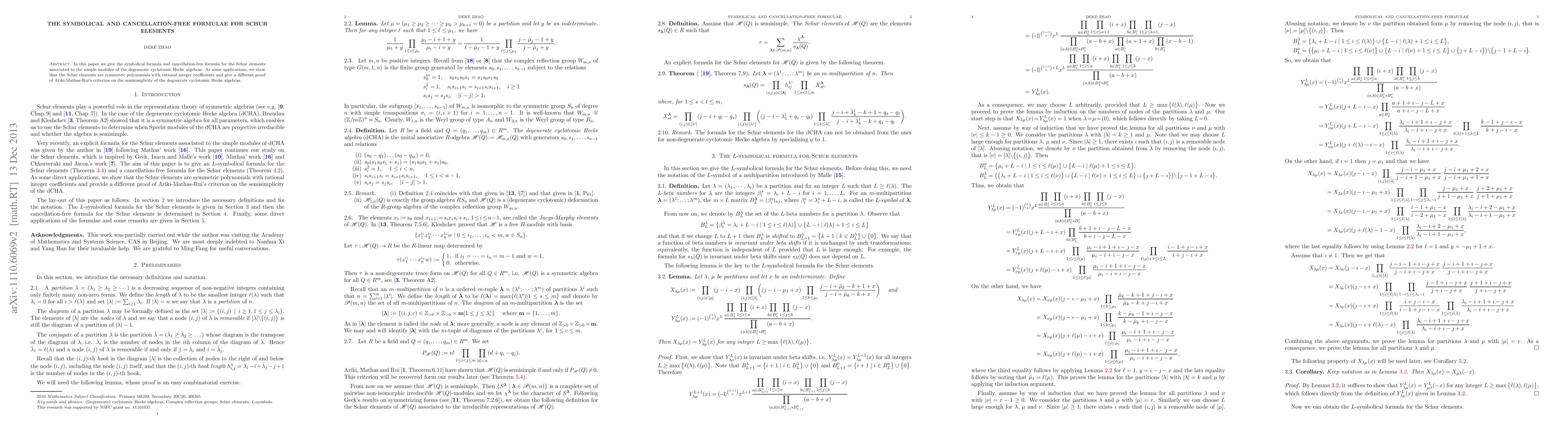 Summary: This paper presents symbolic and cancellation-free formulae for Schur elements in degenerate cyclotomic Hecke algebras, demonstrating their symmetry, integral coefficient properties, and providing an alternative proof for the semi-simplicity criterion of these algebras.