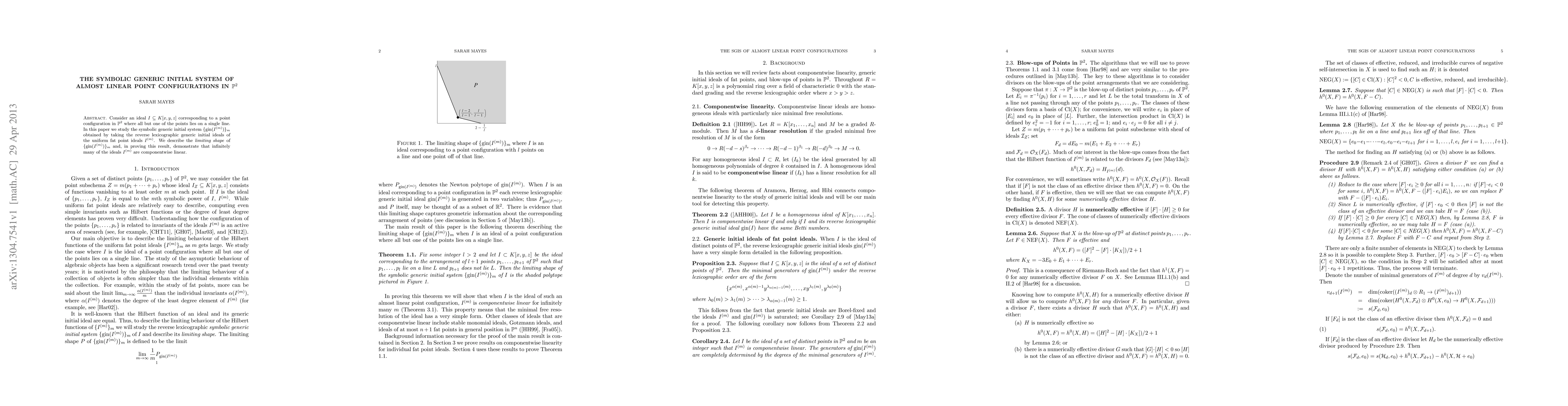 Summary: This paper investigates the symbolic generic initial system for almost linear point configurations in projective plane P2, revealing that infinitely many associated uniform fat point ideals are componentwise linear and describing the limiting shape of this system.