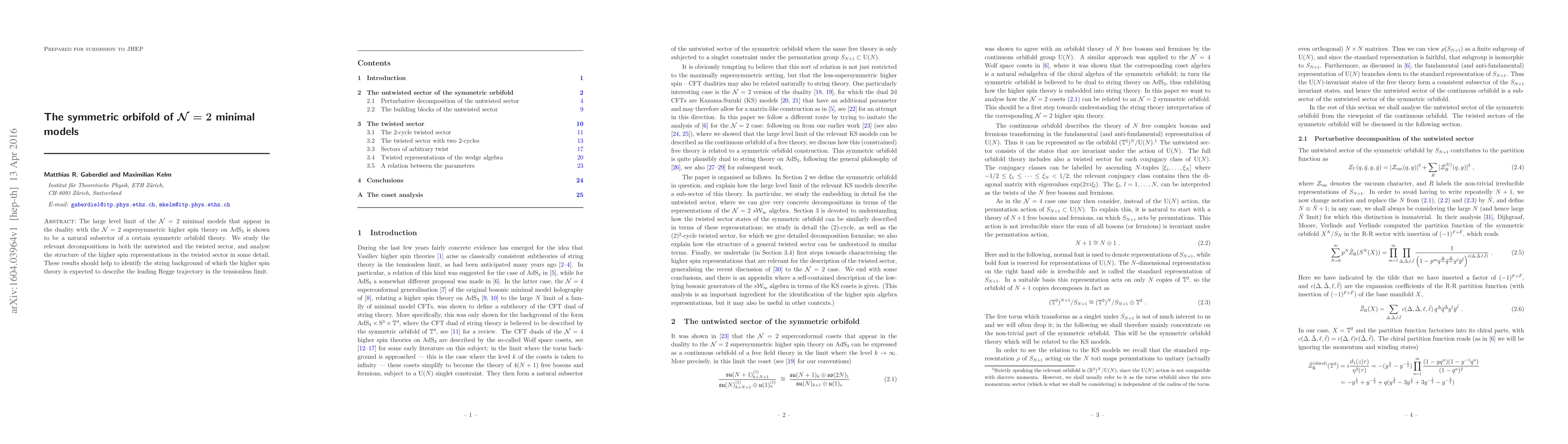 The large level limit of the N=2 minimal models that appear in the duality with the N=2 supersymmetric higher spin theory on AdS_3 is shown to be a natural subsector of a certain symmetric orbifold theory. We study the relevant decompositions in both the untwisted and the twisted sector, and analyse the structure of the higher spin representations in the twisted sector in some detail. These results should help to identify the string background of which the higher spin theory is expected to describe the leading Regge trajectory in the tensionless limit.