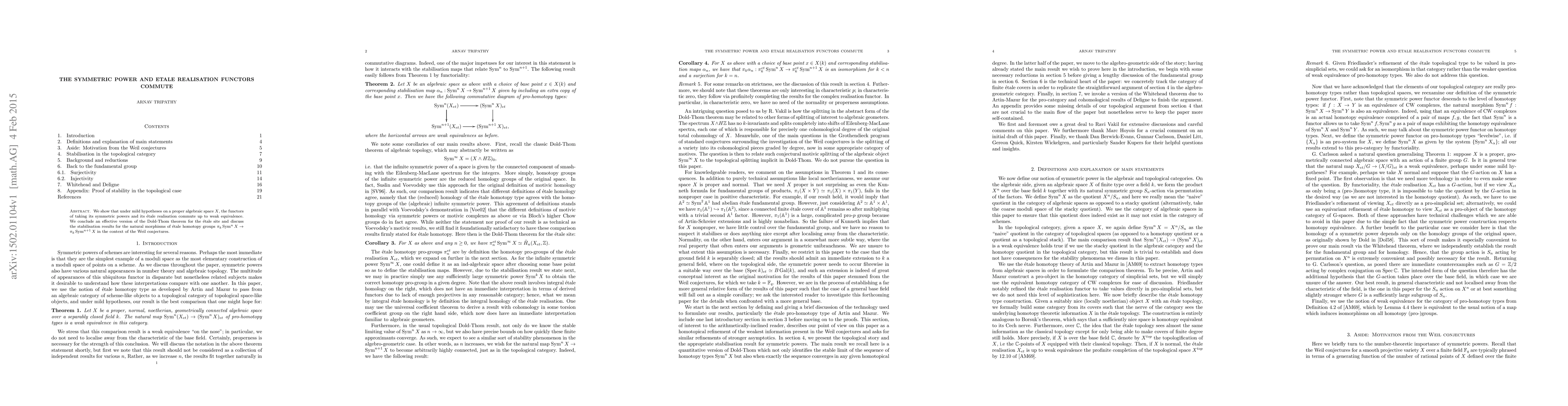 This paper demonstrates that the functors for taking symmetric powers and étale realisation of a proper algebraic space $X$ commute up to weak equivalence, establishing an effective Dold-Thom theorem for the étale site and discussing stabilisation results for étale homotopy groups relevant to the Weil conjectures.