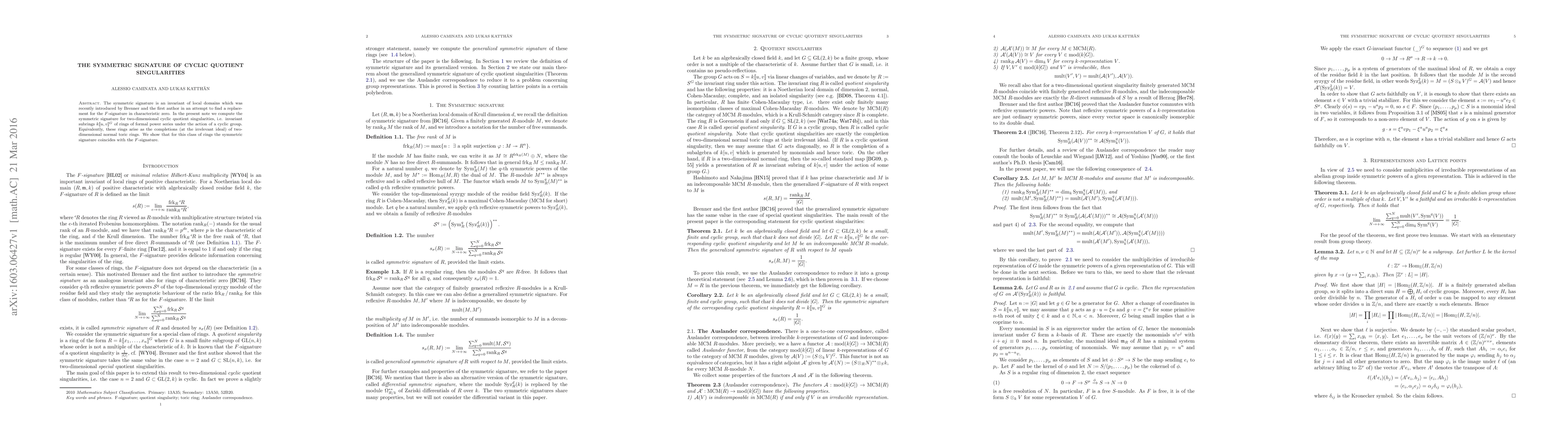 This paper computes the symmetric signature for two-dimensional cyclic quotient singularities, demonstrating its equivalence with the $F$-signature in this context. The symmetric signature serves as a local domain invariant, potentially replacing $F$-signature in characteristic zero settings.