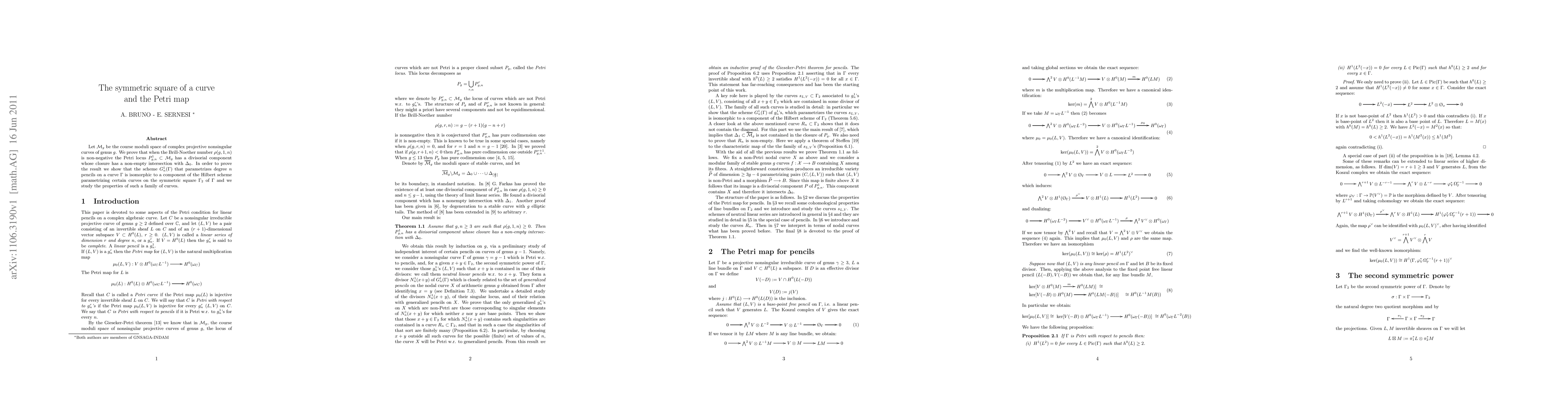 Let $\M_g$ be the course moduli space of complex projective nonsingular curves of genus $g$. We prove that when the Brill-Noether number $\rho(g,1,n)$ is non-negative the Petri locus $P^1_{g,n}\subset \M_g$ has a divisorial component whose closure has a non-empty intersection with $\Delta_0$. In order to prove the result we show that the scheme $G^1_n(\Gamma)$ that parametrizes degree $n$ pencils on a curve $\Gamma$ is isomorphic to a component of the Hilbert scheme parametrizing certain curves on the symmetric square $\Gamma_2$ of $\Gamma$ and we study the properties of such a family of curves.