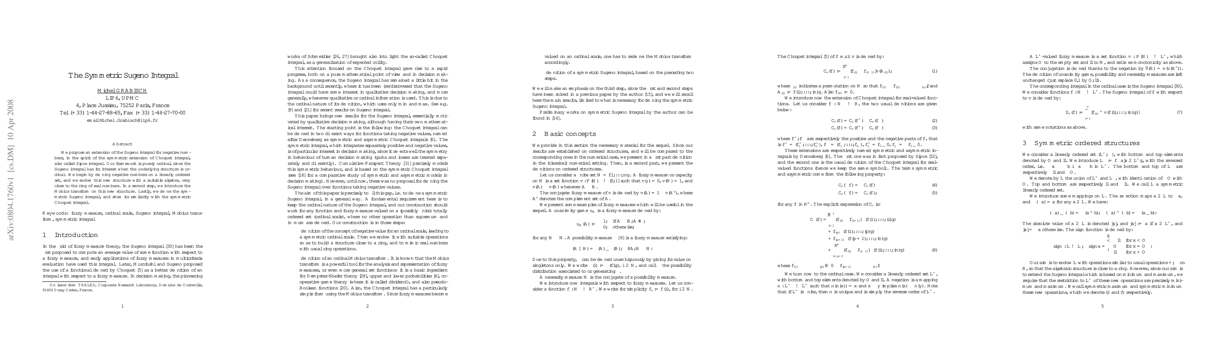 This paper proposes an extension of the Sugeno integral to accommodate negative numbers, inspired by the symmetric Choquet integral. It defines negative numbers on a linearly ordered set and introduces the Möbius transform to establish a symmetric Sugeno integral, demonstrating its similarity to the symmetric Choquet integral.