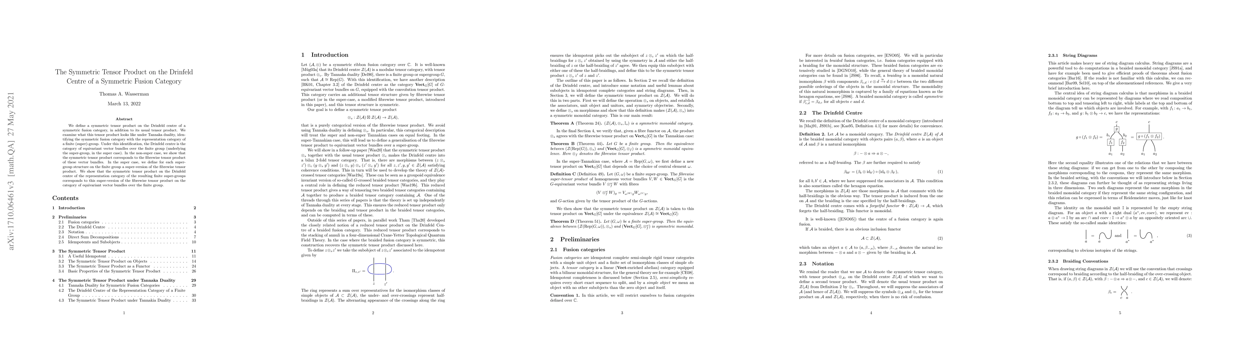 The paper introduces a symmetric tensor product on the Drinfeld centre of a symmetric fusion category, examining its structure under Tannaka duality, which reveals it as equivariant vector bundles over a finite (super)-group. In the super case, it defines a super-version of the fibrewise tensor product.