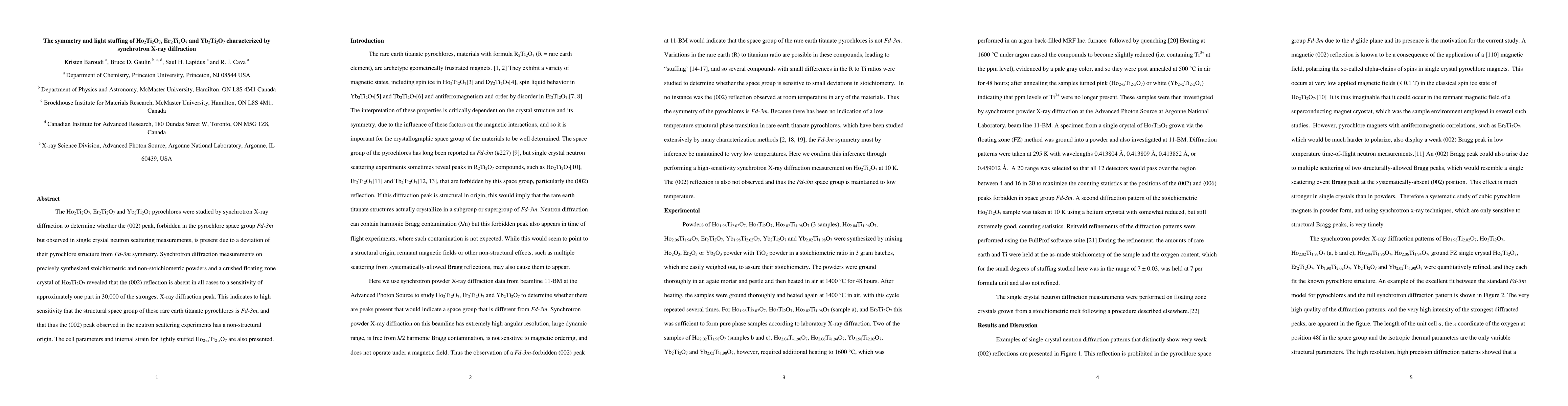 This study uses synchrotron X-ray diffraction to confirm that the rare earth titanate pyrochlores Ho2Ti2O7, Er2Ti2O7, and Yb2Ti2O7 exhibit the Fd-3m space group, with no detectable (002) peak, indicating no structural deviations. The findings suggest the (002) peak observed in neutron scattering is non-structural.