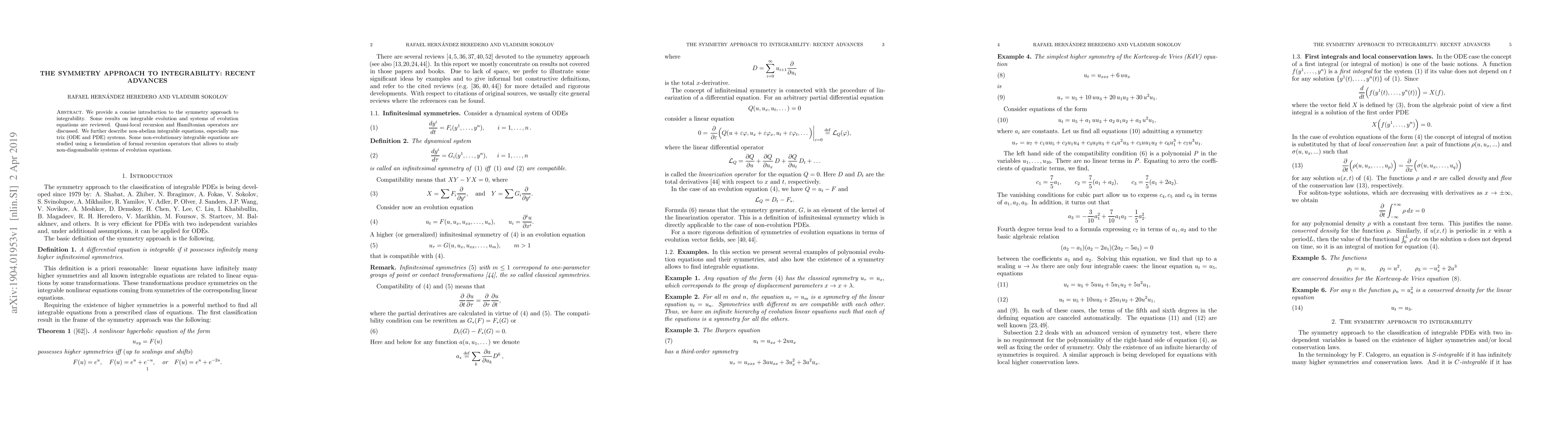 We provide a concise introduction to the symmetry approach to integrability. Some results on integrable evolution and systems of evolution equations are reviewed. Quasi-local recursion and Hamiltonian operators are discussed. We further describe non-abelian integrable equations, especially matrix (ODE and PDE) systems. Some non-evolutionary integrable equations are studied using a formulation of formal recursion operators that allows to study non-diagonalisable systems of evolution equations.