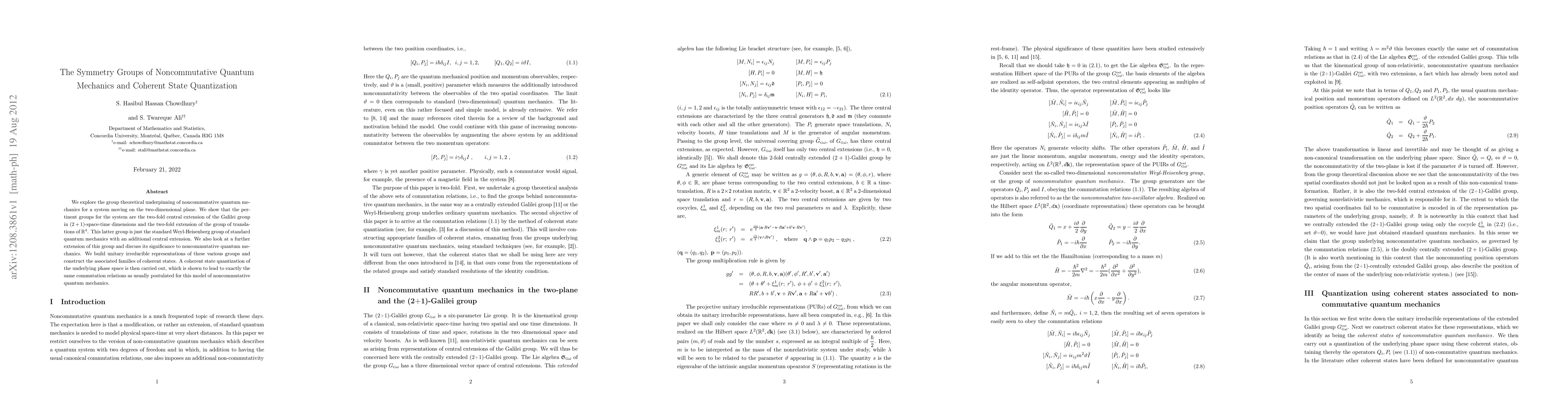 This paper investigates the symmetry groups of noncommutative quantum mechanics on a two-dimensional plane, identifying the two-fold central extension of the Galilei group and the two-fold extension of the Weyl-Heisenberg group. It constructs unitary irreducible representations and associated coherent states, ultimately achieving a coherent state quantization that reproduces the standard commutation relations of noncommutative quantum mechanics.