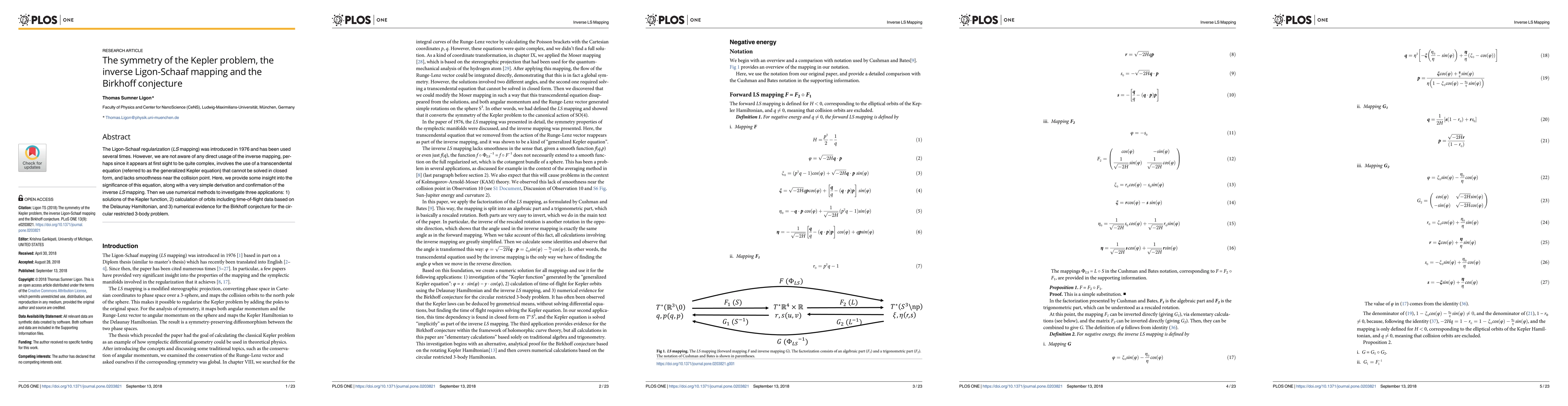 The Ligon-Schaaf regularization (LS mapping) was introduced in 1976 and has been used several times. However, we are not aware of any direct usage of the inverse mapping, perhaps since it appears at first sight to be quite complex and involves the use of a transcendental equation (referred to as the generalized Kepler equation) that cannot be solved in closed form. Here, we provide some insight into the significance of this equation, along with a very simple derivation and confirmation of the inverse LS mapping. Then we use numerical methods to investigate three applications: 1) solutions of the Kepler function, 2) calculation of orbits including time-of-flight data based on the Delaunay Hamiltonian, and 3) numerical evidence for the Birkhoff conjecture for the circular restricted 3-body problem.