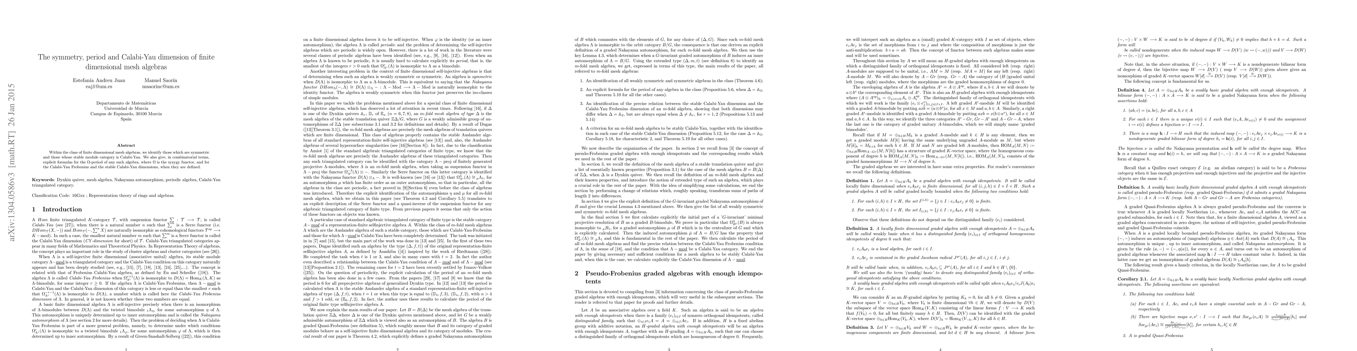 This paper investigates finite dimensional mesh algebras, identifying symmetric ones and those with a weakly Calabi-Yau stable module category. It also provides combinatorial formulas for their periods and Calabi-Yau dimensions.