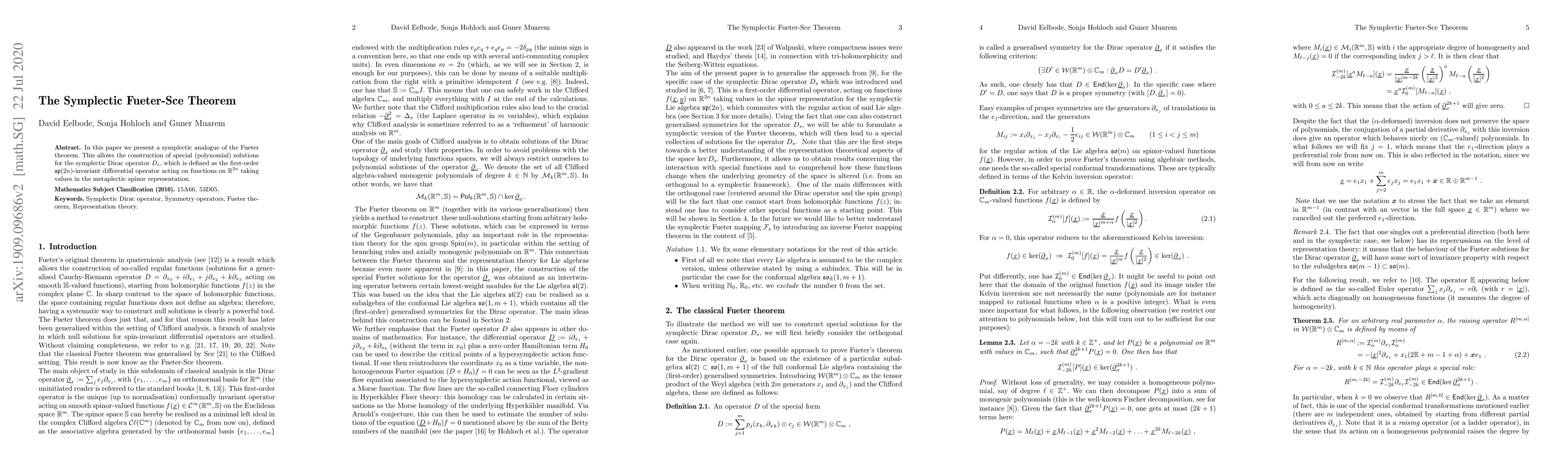 The paper introduces a symplectic analogue of the Fueter theorem, providing a method for constructing special solutions for the symplectic Dirac operator using deformed raising operators and a formal identification involving Clifford variables.