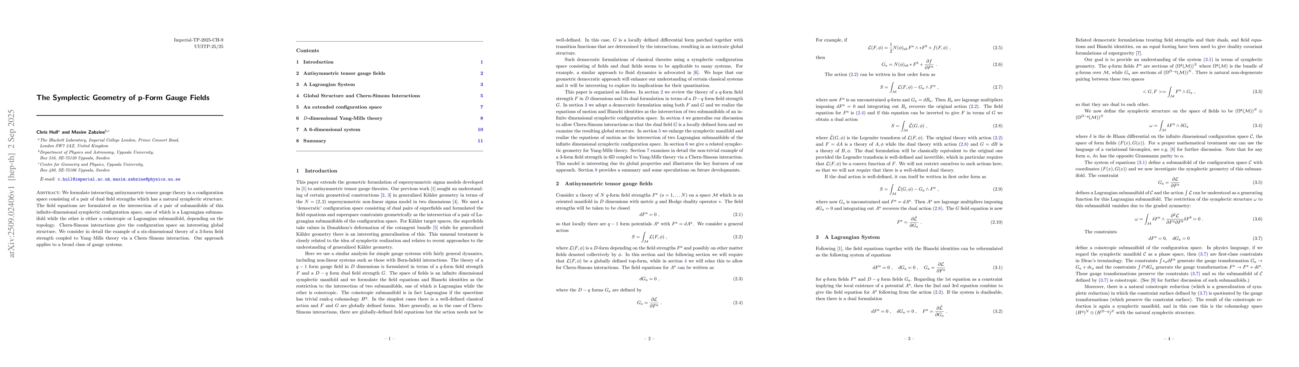 We formulate interacting antisymmetric tensor gauge theory in a configuration space consisting of a pair of dual field strengths which has a natural symplectic structure. The field equations are formulated as the intersection of a pair of submanifolds of this infinite-dimensional symplectic configuration space, one of which is a Lagrangian submanifold while the other is either a coisotropic or Lagrangian submanifold, depending on the topology. Chern-Simons interactions give the configuration space an interesting global structure. We consider in detail the example of a six-dimensional theory of a 3-form field strength coupled to Yang-Mills theory via a Chern-Simons interaction. Our approach applies to a broad class of gauge systems.