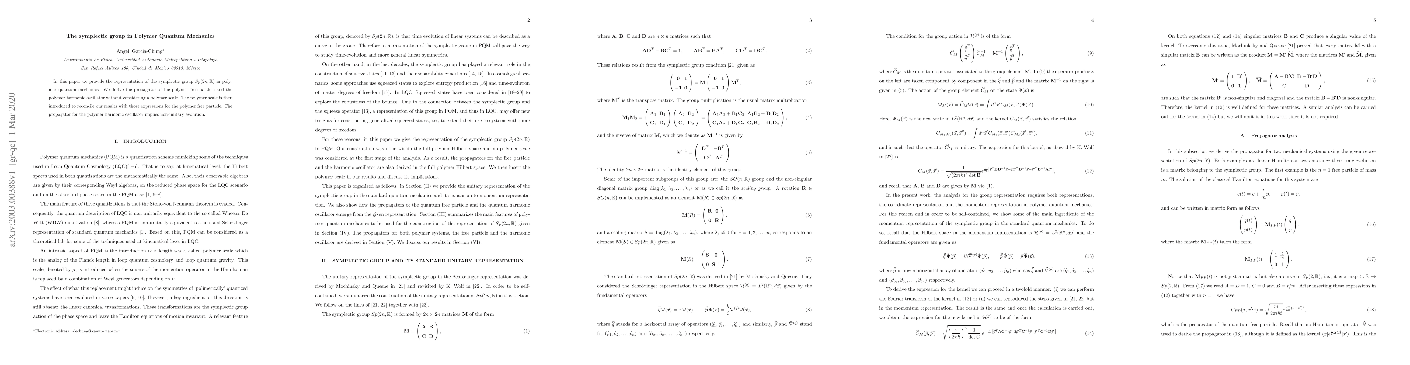 In this paper we provide the representation of the symplectic group $Sp(2n, \mathbb{R})$ in polymer quantum mechanics. We derive the propagator of the polymer free particle and the polymer harmonic oscillator without considering a polymer scale. The polymer scale is then introduced to reconcile our results with those expressions for the polymer free particle. The propagator for the polymer harmonic oscillator implies non-unitary evolution.