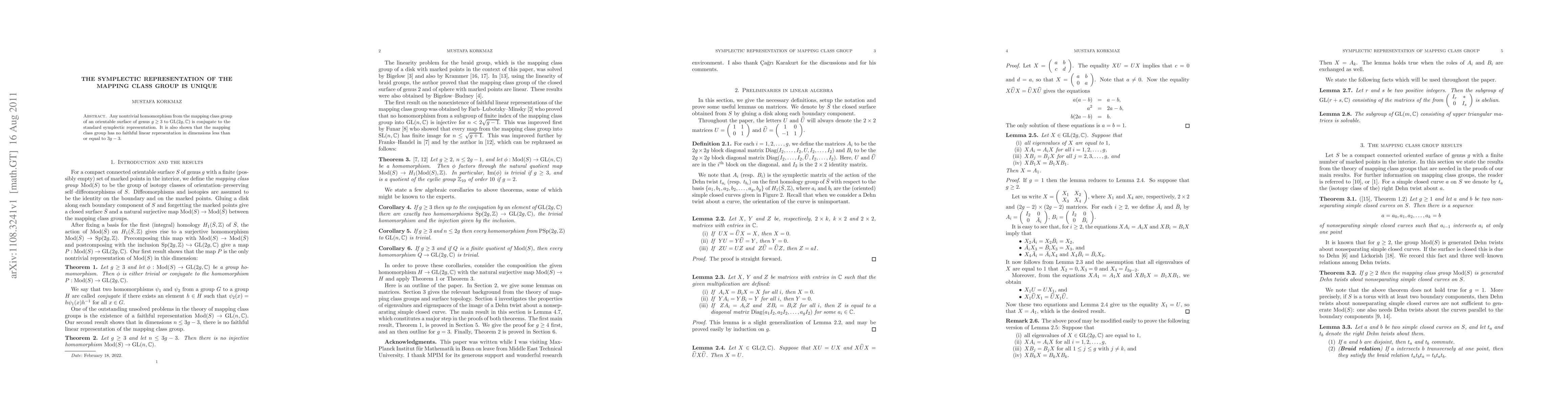 This paper demonstrates that the standard symplectic representation is the unique nontrivial homomorphism from the mapping class group of a genus $g\geq 3$ orientable surface to $\GL(2g,\C)$, and proves that no faithful linear representation exists in dimensions $\leq 3g-3$.