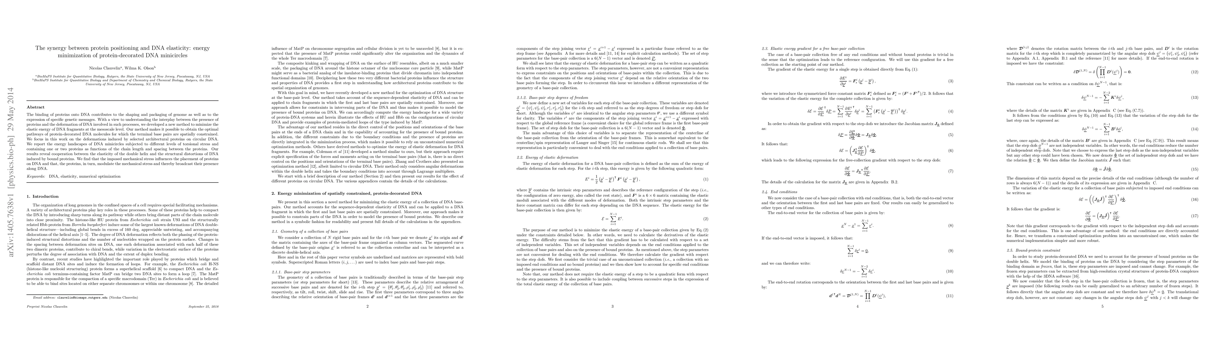 This paper explores the interplay between protein binding and DNA elasticity, developing a method to minimize elastic energy in protein-decorated DNA minicircles. The study reveals how mechanical stress influences protein positioning and how proteins modulate DNA stress, highlighting a cooperative relationship between protein structure and DNA deformation.