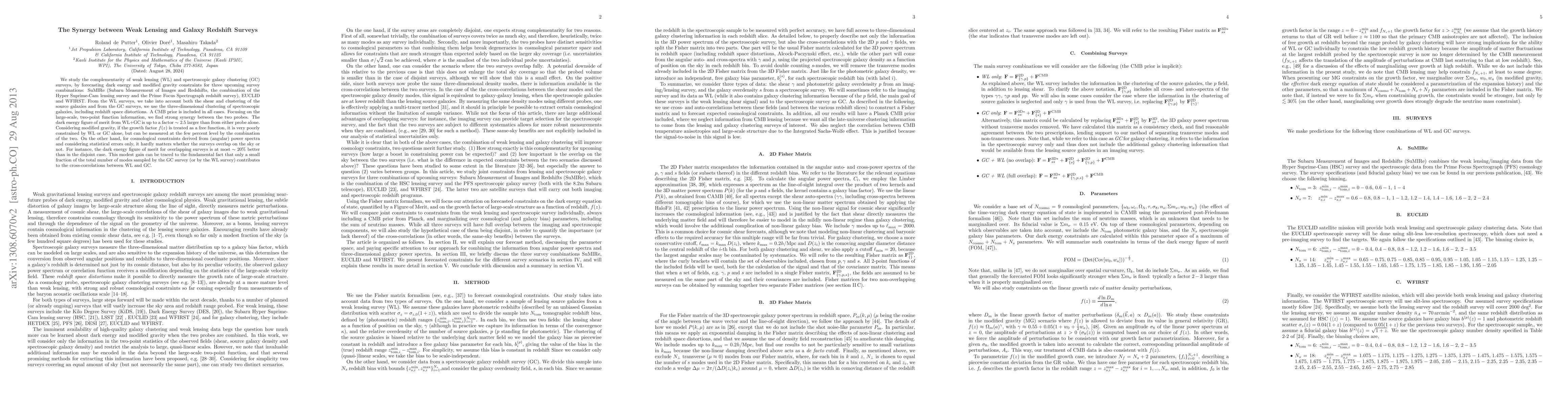 This paper investigates the synergy between weak lensing (WL) and galaxy redshift surveys (GC) for constraining dark energy and modified gravity, finding that combining WL and GC data significantly improves dark energy constraints by up to a factor of 2.5 compared to using either method alone. However, for cosmological constraints from power spectra, the overlap of surveys on the sky provides only a modest ~20% improvement.