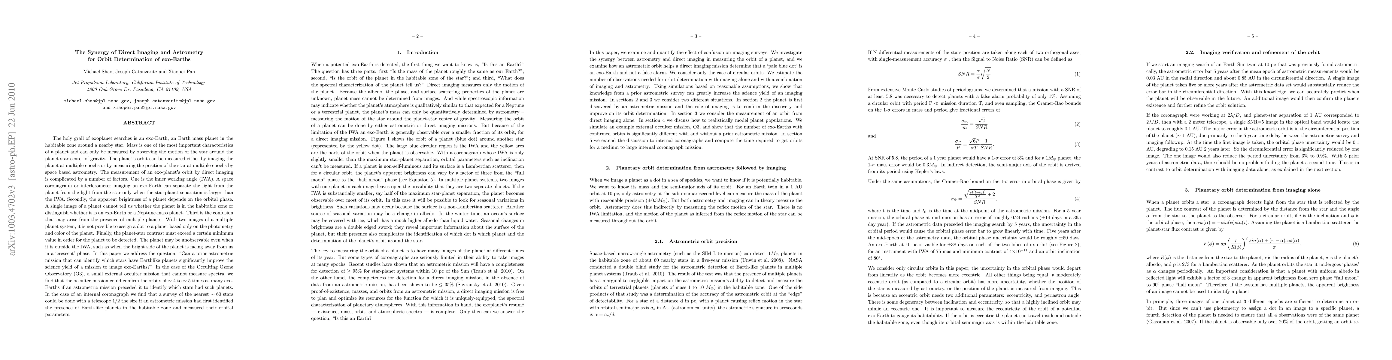 The holy grail of exoplanet searches is an exo-Earth, an Earth mass planet in the habitable zone around a nearby star. Mass is the most important parameter of a planet and can only be measured by observing the motion of the star around the planet-star center of mass. A single image of a planet, however, does not provide evidence that the planet is Earth mass or that it is in a habitable zone orbit. The planet's orbit, however, can be measured either by imaging the planet at multiple epochs or by measuring the position of the star at multiple epochs by space-based astrometry. The measurement of an exo-planet's orbit by direct imaging is complicated by a number of factors: (1) the inner working angle (IWA); (2) the apparent brightness of the planet depending on the orbital phase; (3) confusion arising from the presence of multiple planets; and (4) the planet-star contrast. In this paper we address the question: "Can a prior astrometric mission that can identify which stars have Earthlike planets significantly improve the science yield of a mission to image exo-Earths?" We find that the Occulting Ozone Observatory (a small external occulter mission that cannot measure spectra) could confirm the orbits of ~4 to ~5 times as many exo-Earths if an astrometric mission preceded it to identify which stars had such planets. We find that in the case of an internal coronagraph, a survey of the nearest ~60 stars could be done with a telescope of half the size if an astrometric mission had first identified the presence of Earth-like planets in the habitable zone and measured their orbital parameters.
