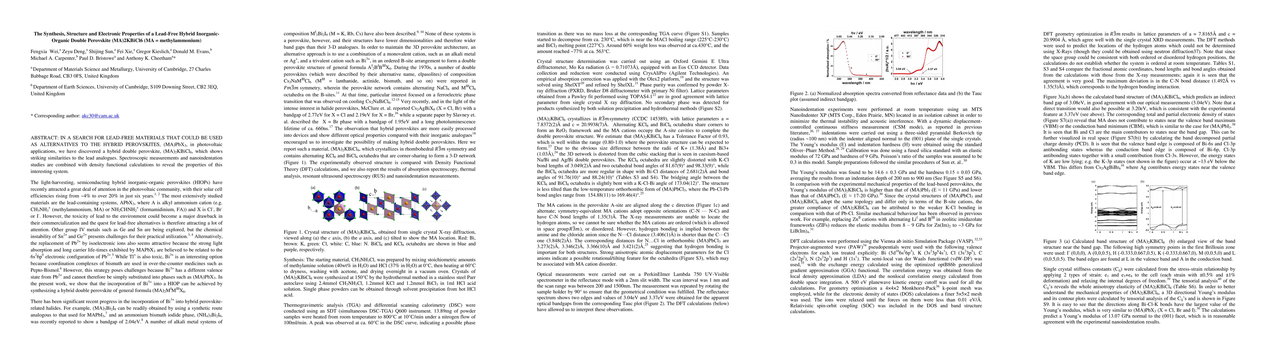 In a search for Lead-free materials that could be used as alternatives to the hybrid perovskites,(MA)PbX3, in photovoltaic applications, we have discovered a hybrid double perovskite, (MA)2KBiCl6, which shows striking similarities to the lead analogues. Spectroscopic measurements and nanoindentation studies are combined with density functional calculations to reveal the properties of this interesting system.