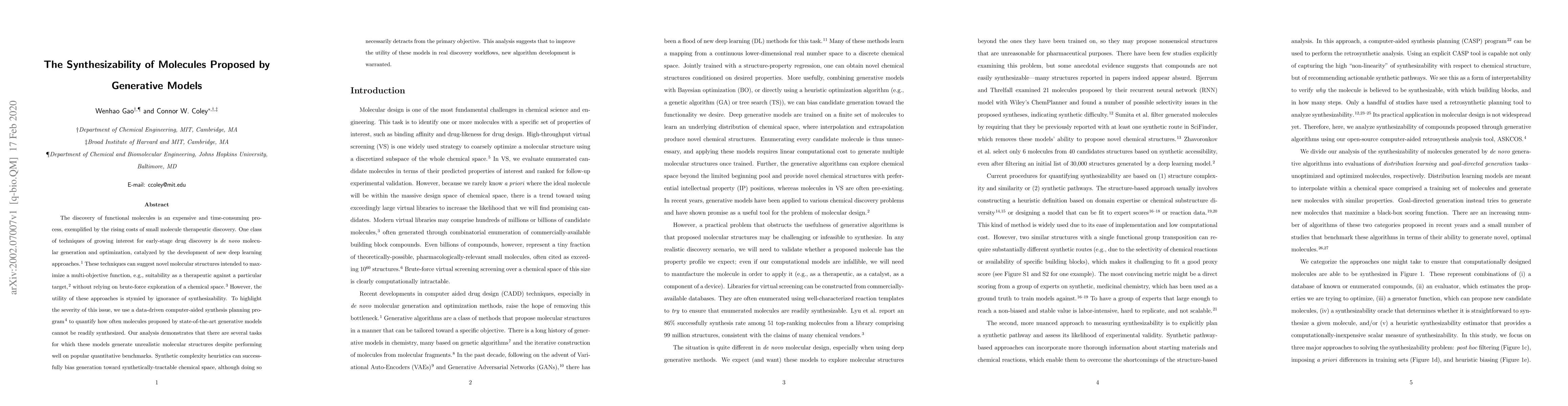 Generative models often produce molecules that cannot be readily synthesized, hindering their utility in drug discovery workflows. This issue can be addressed through the development of new algorithms to bias generation toward synthetically-tractable chemical space.
