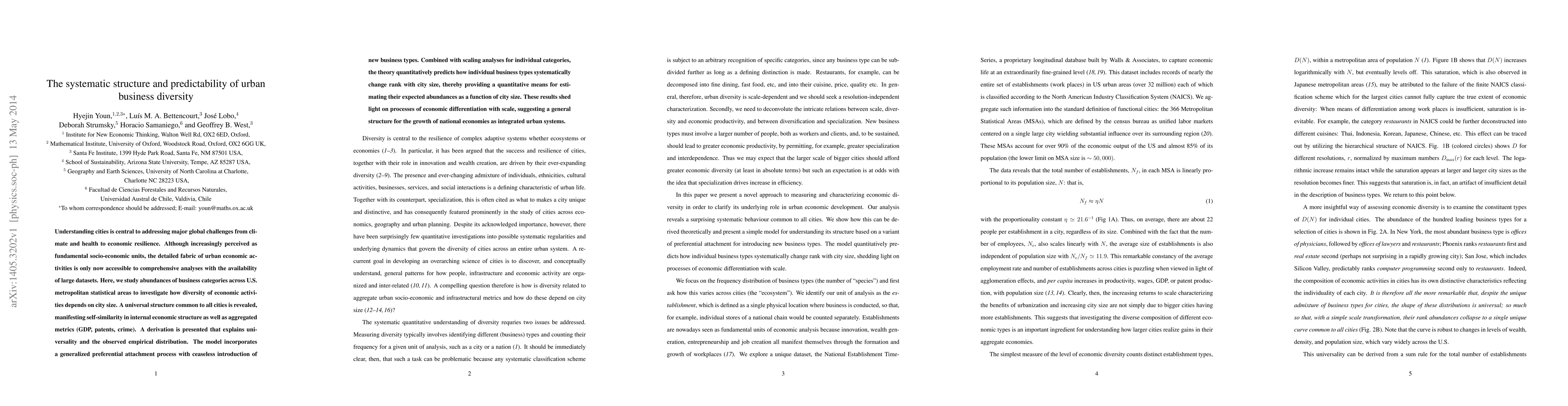 Understanding cities is central to addressing major global challenges from climate and health to economic resilience. Although increasingly perceived as fundamental socio-economic units, the detailed fabric of urban economic activities is only now accessible to comprehensive analyses with the availability of large datasets. Here, we study abundances of business categories across U.S. metropolitan statistical areas to investigate how diversity of economic activities depends on city size. A universal structure common to all cities is revealed, manifesting self-similarity in internal economic structure as well as aggregated metrics (GDP, patents, crime). A derivation is presented that explains universality and the observed empirical distribution. The model incorporates a generalized preferential attachment process with ceaseless introduction of new business types. Combined with scaling analyses for individual categories, the theory quantitatively predicts how individual business types systematically change rank with city size, thereby providing a quantitative means for estimating their expected abundances as a function of city size. These results shed light on processes of economic differentiation with scale, suggesting a general structure for the growth of national economies as integrated urban systems.