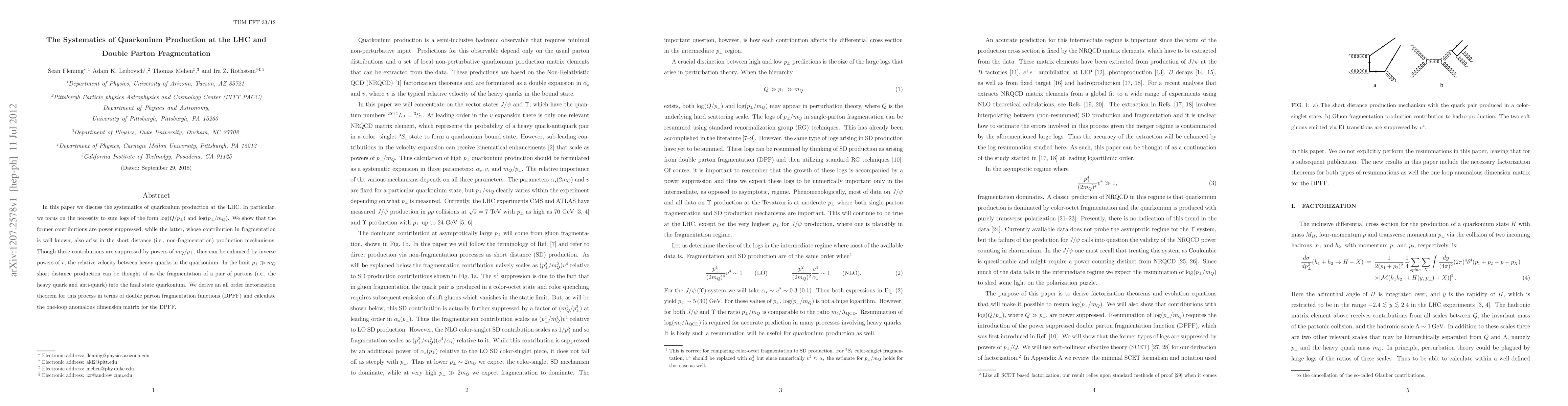 In this paper we discuss the systematics of quarkonium production at the LHC. In particular, we focus on the necessity to sum logs of the form log(Q/p_perp) and log(p_perp/m_Q). We show that the former contributions are power suppressed, while the latter, whose contribution in fragmentation is well known, also arise in the short distance (i.e., non-fragmentation) production mechanisms. Though these contributions are suppressed by powers of m_Q/p_perp, they can be enhanced by inverse powers of v, the relative velocity between heavy quarks in the quarkonium. In the limit p_perp >> m_Q short distance production can be thought of as the fragmentation of a pair of partons (i.e., the heavy quark and anti-quark) into the final state quarkonium. We derive an all order factorization theorem for this process in terms of double parton fragmentation functions (DPFF) and calculate the one-loop anomalous dimension matrix for the DPFF.