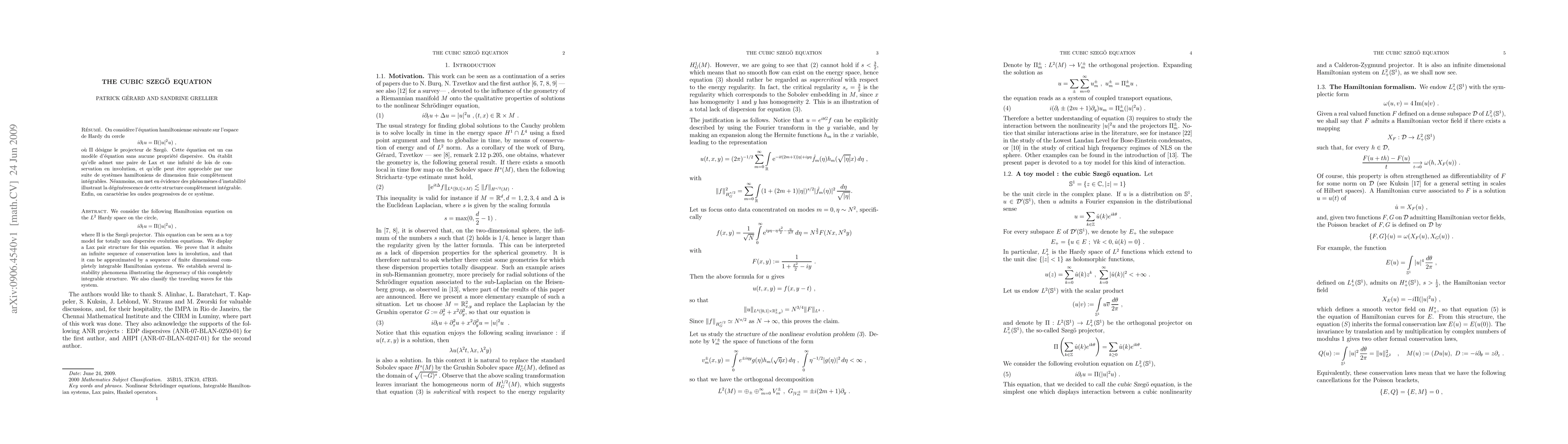 We consider the following Hamiltonian equation on the $L^2$ Hardy space on the circle, $$i\partial_tu=\Pi(|u|^2u) ,$$ where $\Pi $ is the Szeg\"o projector. This equation can be seen as a toy model for totally non dispersive evolution equations. We display a Lax pair structure for this equation. We prove that it admits an infinite sequence of conservation laws in involution, and that it can be approximated by a sequence of finite dimensional completely integrable Hamiltonian systems. We establish several instability phenomena illustrating the degeneracy of this completely integrable structure. We also classify the traveling waves for this system.
