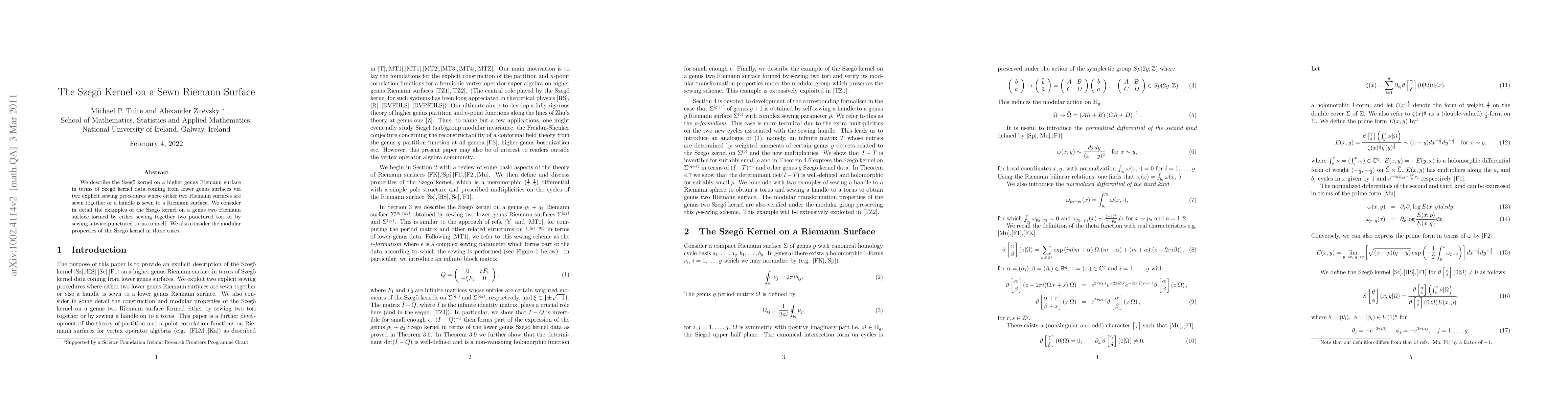 This paper describes how to calculate a special mathematical object called the Szeg"o kernel on higher genus Riemann surfaces using data from lower genus surfaces, with implications for understanding modular properties.