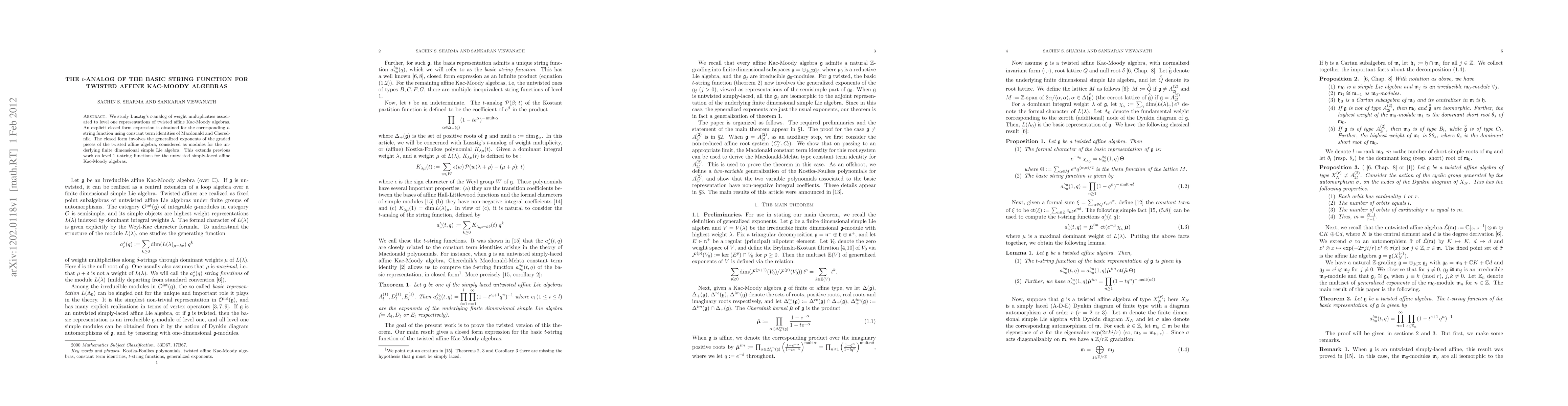 This paper derives an explicit closed form for the t-analog of the basic string function for twisted affine Kac-Moody algebras, utilizing constant term identities from Macdonald and Cherednik. This extends previous results for untwisted simply-laced affine algebras to the twisted case.
