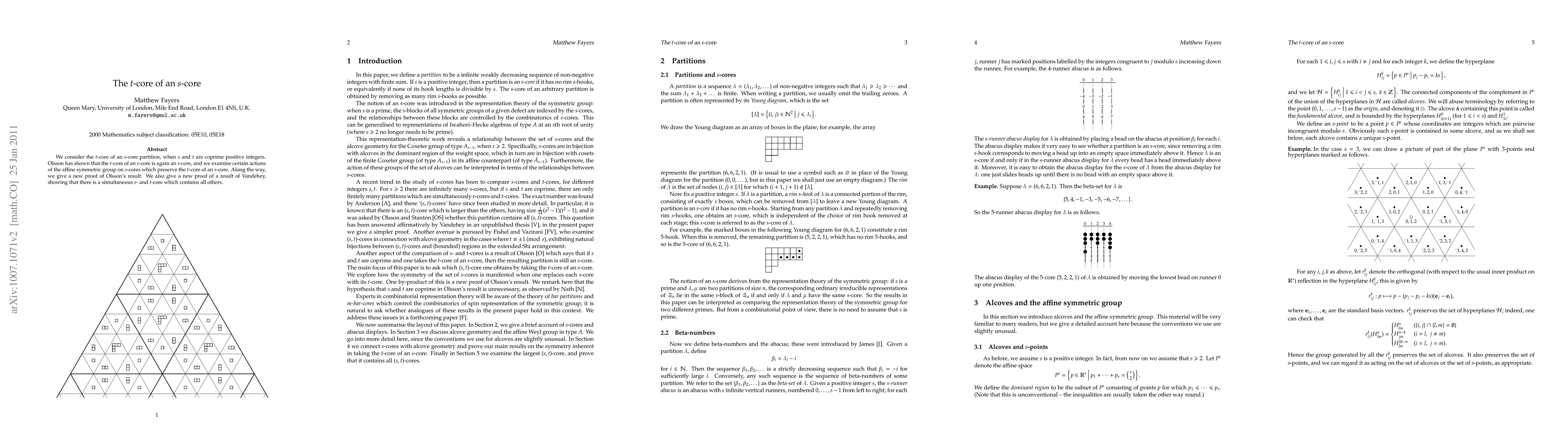 We consider the $t$-core of an $s$-core partition, when $s$ and $t$ are coprime positive integers. Olsson has shown that the $t$-core of an $s$-core is again an $s$-core, and we examine certain actions of the affine symmetric group on $s$-cores which preserve the $t$-core of an $s$-core. Along the way, we give a new proof of Olsson's result. We also give a new proof of a result of Vandehey, showing that there is a simultaneous $s$- and $t$-core which contains all others.