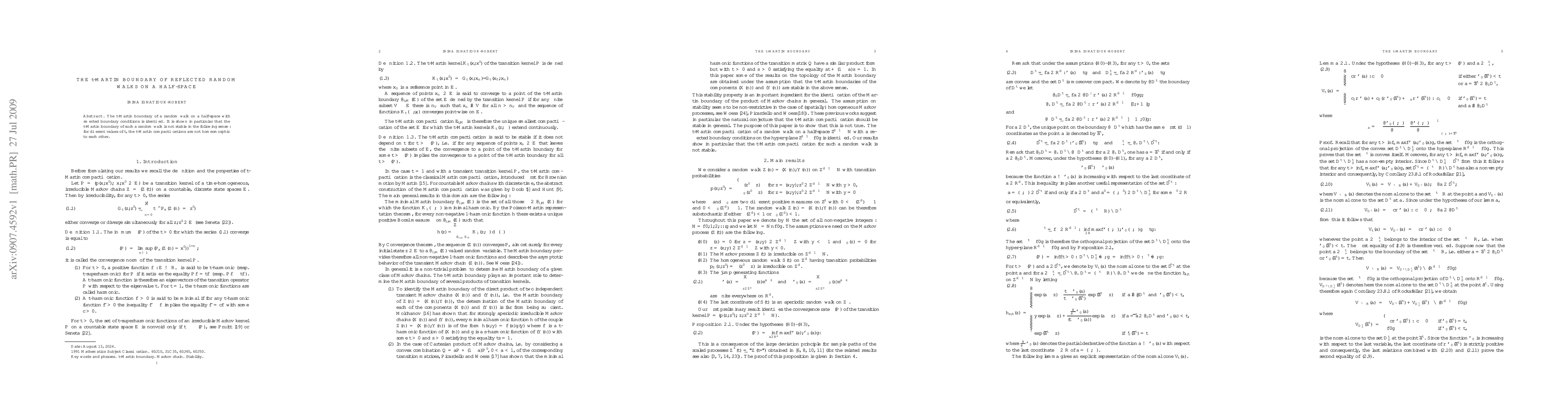 Summary: This paper identifies the t-Martin boundary for reflected random walks on a half-space and demonstrates that these boundaries are not stable; specifically, t-Martin compactifications for different t values are not homeomorphic to each other.