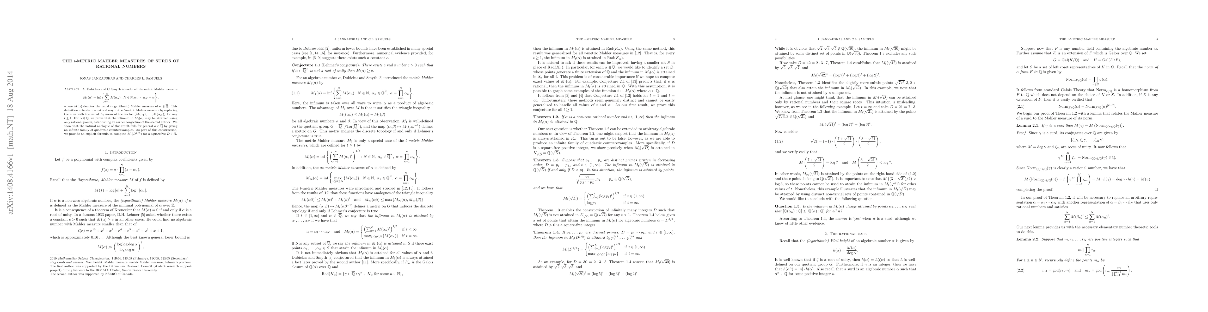 A. Dubickas and C. Smyth introduced the metric Mahler measure $$ M_1(\alpha) = \inf\left\{\sum_{n=1}^N M(\alpha_n): N \in \mathbb N, \alpha_1 \cdots \alpha_N = \alpha\right\}, $$ where $M(\alpha)$ denotes the usual (logarithmic) Mahler measure of $\alpha \in \overline{\mathbb Q}$. This definition extends in a natural way to the $t$-metric Mahler measure by replacing the sum with the usual $L_t$ norm of the vector $(M(\alpha_1), \dots, M(\alpha_N))$ for any $t\geq 1$. For $\alpha \in \mathbb Q$, we prove that the infimum in $M_t(\alpha)$ may be attained using only rational points, establishing an earlier conjecture of the second author. We show that the natural analogue of this result fails for general $\alpha\in\overline{\mathbb Q}$ by giving an infinite family of quadratic counterexamples. As part of this construction, we provide an explicit formula to compute $M_t(D^{1/k})$ for a square-free $D \in \mathbb N$.