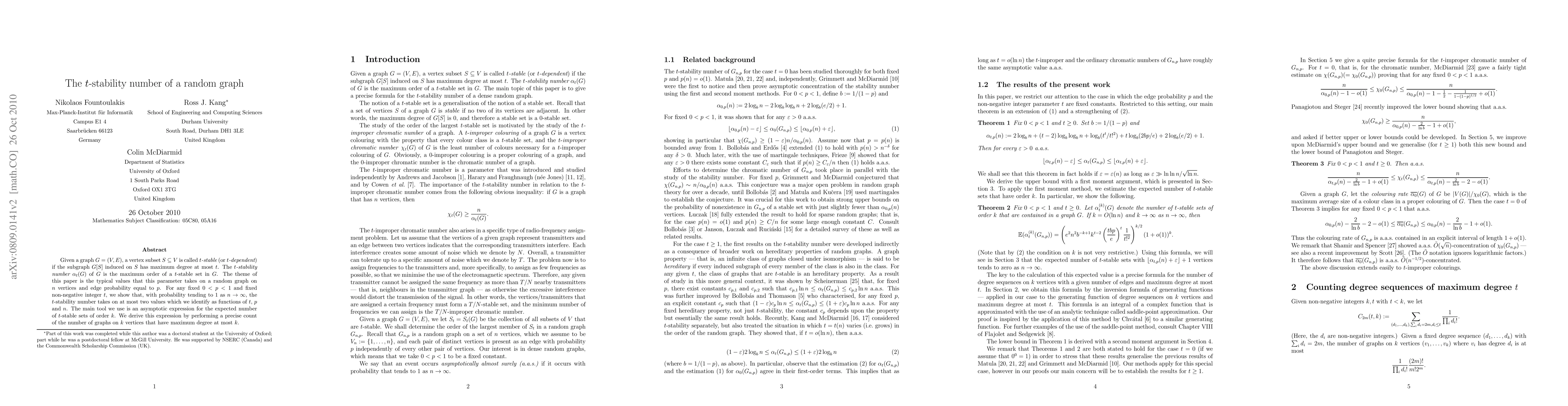 A random graph's t-stability number tends to have at most two values as n grows, depending on parameters p and t, with probability approaching 1.