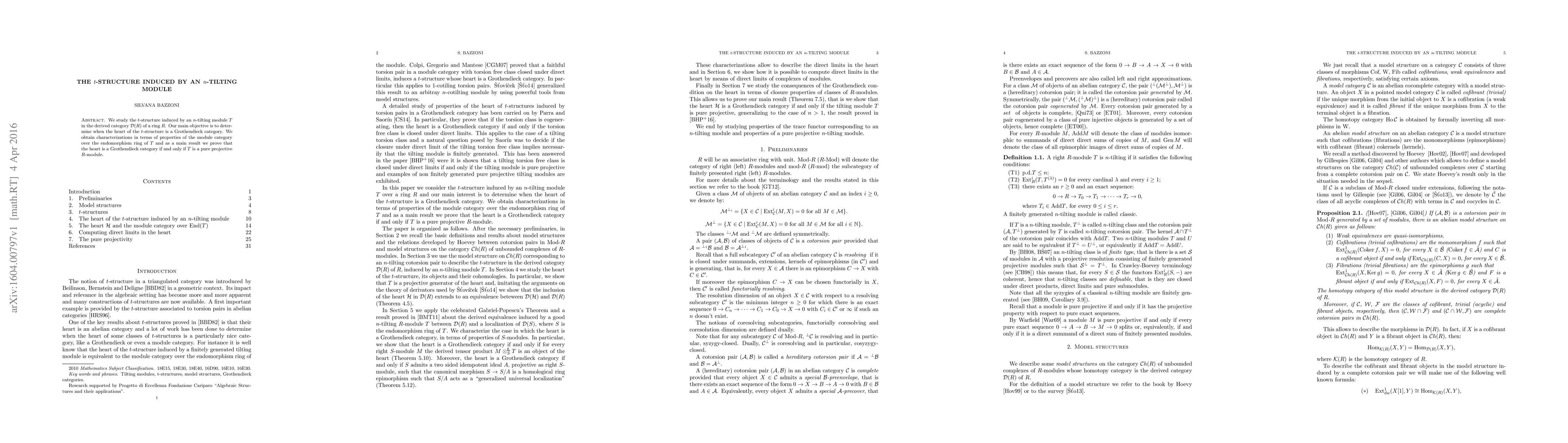 A research paper explores when the heart of a t-structure in derived category D(R) is a Grothendieck category, finding that it occurs if and only if an n-tilting module T is pure projective over R.