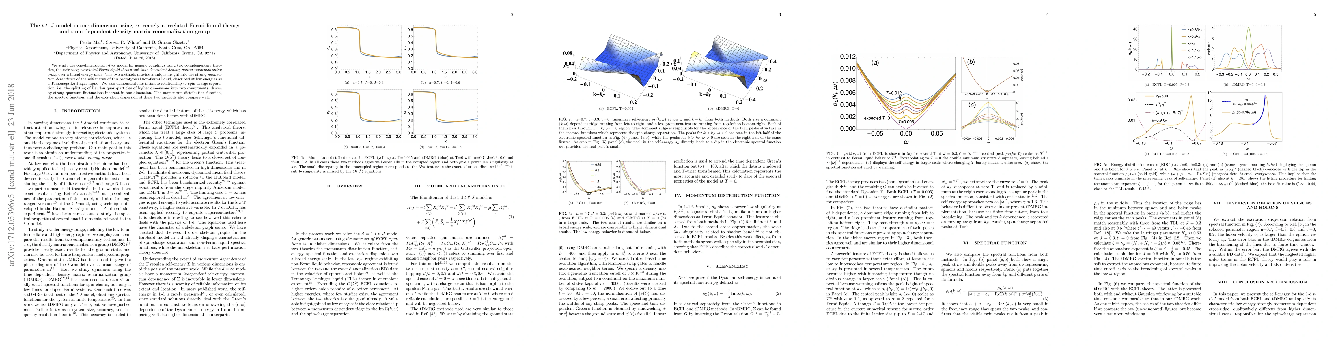 This paper investigates the one-dimensional t-t'-J model using extremely correlated Fermi liquid theory and time-dependent density matrix renormalization group, revealing strong momentum dependence in the self-energy and demonstrating the model's connection to spin-charge separation. Both methods show consistent results for the momentum distribution, spectral function, and excitation dispersion.