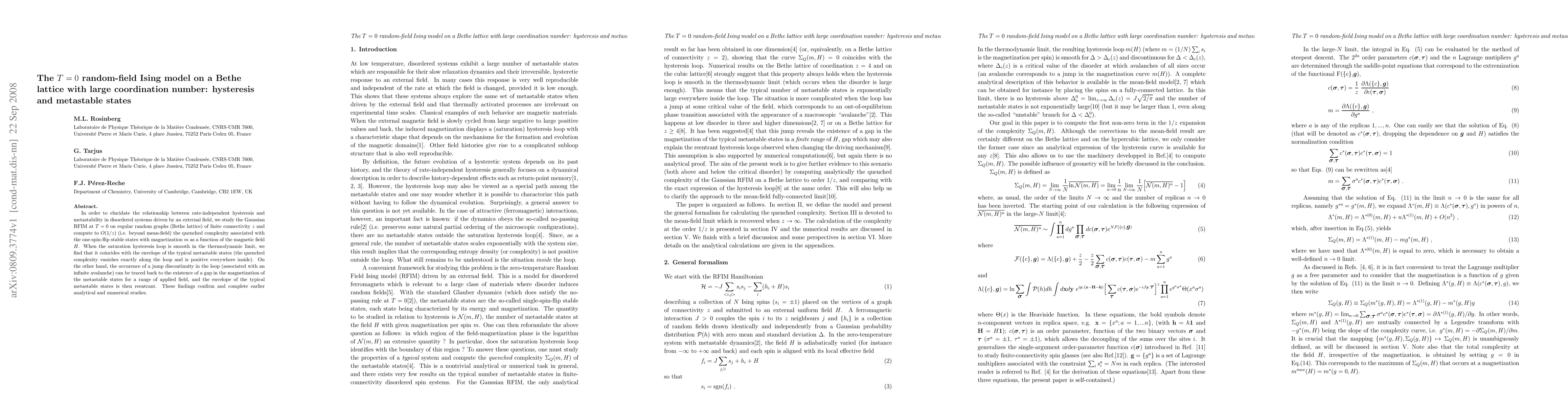 This paper investigates the T=0 random-field Ising model on a Bethe lattice, revealing the connection between hysteresis and metastability in disordered systems. It finds that smooth hysteresis loops coincide with the envelope of typical metastable states, while discontinuities in the loop are linked to gaps in the magnetization of metastable states, leading to reentrant envelopes.