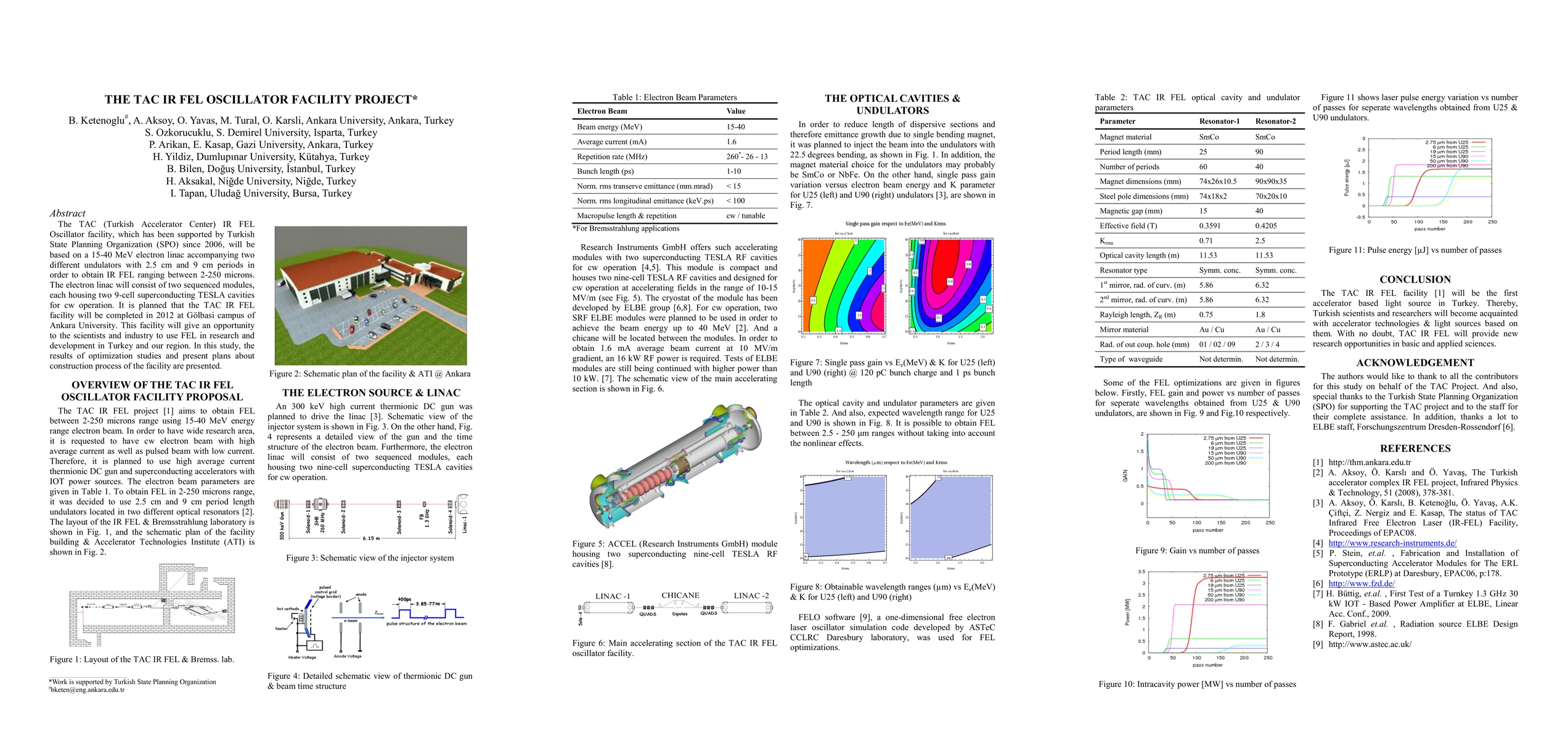 The TAC IR FEL Oscillator Facility project aims to construct a 15-40 MeV electron linac with two undulators for IR FEL ranging from 2 to 250 microns, planned for completion in 2012 at Ankara University. The facility will provide opportunities for research and development in Turkey and its region.