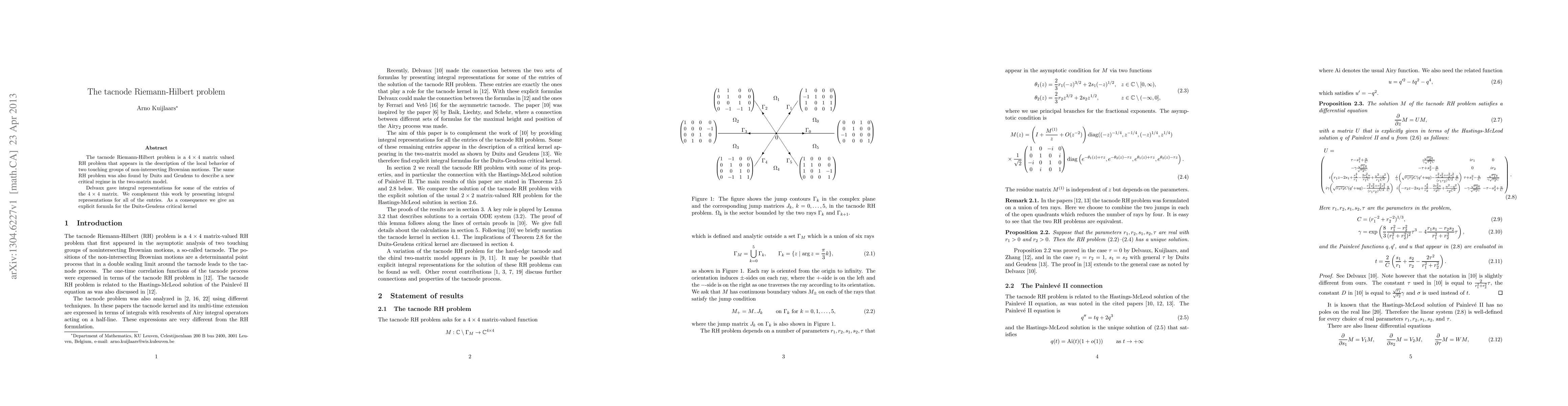 The tacnode Riemann-Hilbert problem is a 4 x 4 matrix valued RH problem that appears in the description of the local behavior of two touching groups of non-intersecting Brownian motions. The same RH problem was also found by Duits and Geudens to describe a new critical regime in the two-matrix model. Delvaux gave integral representations for some of the entries of the 4 x 4 matrix. We complement this work by presenting integral representations for all of the entries. As a consequence we give an explicit formula for the Duits-Geudens critical kernel.