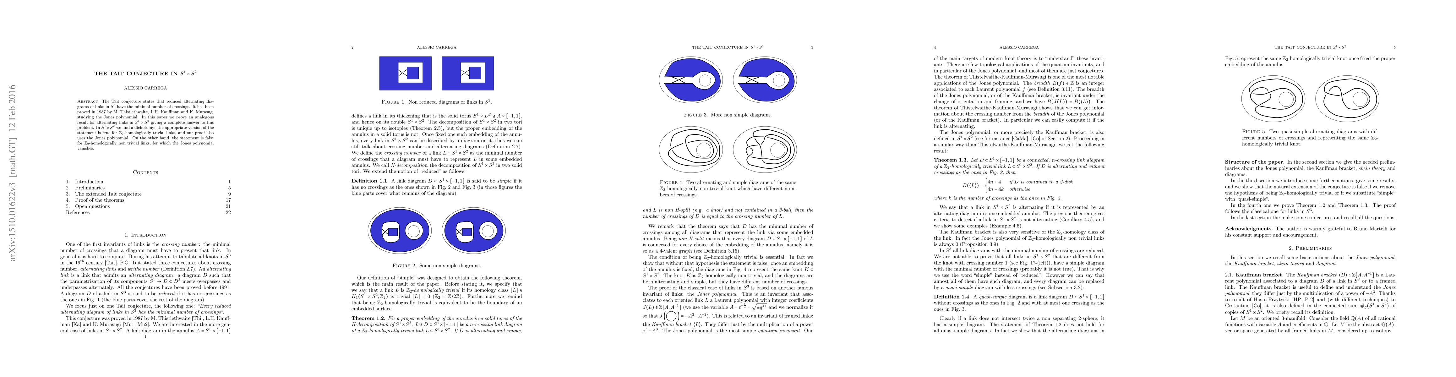 The Tait conjecture states that reduced alternating diagrams of links in S^3 have the minimal number of crossings. It has been proved in 1987 by M. Thistlethwaite, L.H. Kauffman and K. Murasugi studying the Jones polynomial. In this paper we prove an analogous result for alternating links in S^1xS^2 giving a complete answer to this problem. In S^1xS^2 we find a dichotomy: the appropriate version of the statement is true for \Z_2-homologically trivial links, and our proof also uses the Jones polynomial. On the other hand, the statement is false for \Z_2-homologically non trivial links, for which the Jones polynomial vanishes.