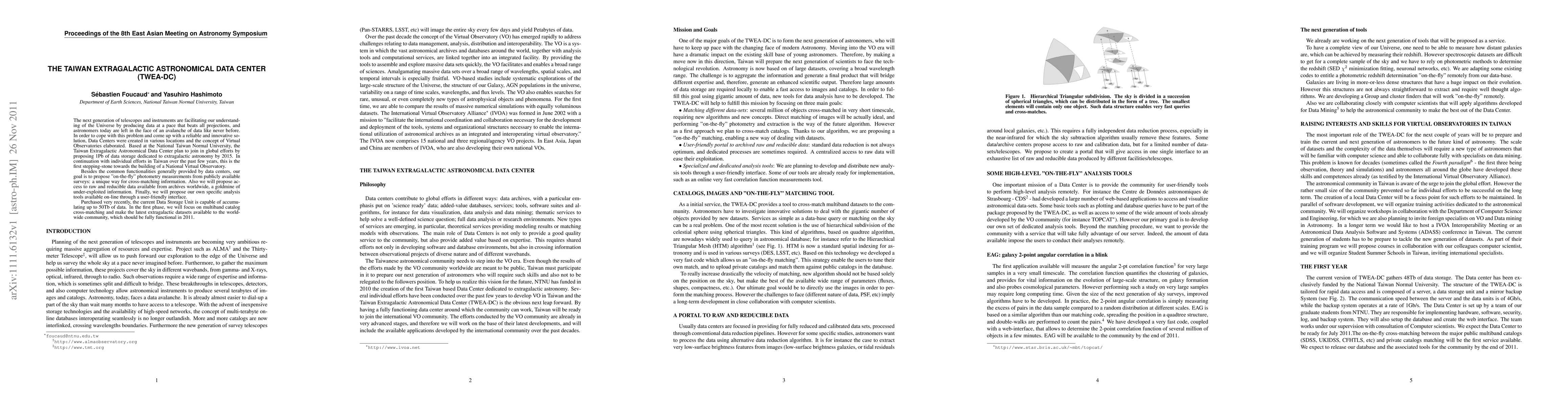The next generation of telescopes and instruments are facilitating our understanding of the Universe by producing data at a pace that beats all projections, and astronomers today are left in the face of an avalanche of data like never before. In order to cope with this problem and come up with a reliable and innovative solution, Data Centers were created in various locations and the concept of Virtual Observatories elaborated. Based at the National Taiwan Normal University, the Taiwan Extragalactic Astronomical Data Center plan to join in global efforts by proposing 1Pb of data storage dedicated to extragalactic astronomy by 2015. In continuation with individual efforts in Taiwan over the past few years, this is the first stepping-stone towards the building of a National Virtual Observatory. Besides the common functionalities generally provided by data centers, our goal is to propose "on-the-fly" photometry measurements from publicly available surveys: a unique way for cross-matching information. Also we will propose access to raw and reducible data available from archives worldwide, a goldmine of under-exploited information. Finally, we will propose our own specific analysis tools available on-line through a user-friendly interface. Purchased very recently, the current Data Storage Unit is capable of accumulating up to 50Tb of data. In the first phase, we will focus on multiband catalog cross-matching and make the latest extragalactic datasets available to the world- wide community, which should be fully functional in 2011.