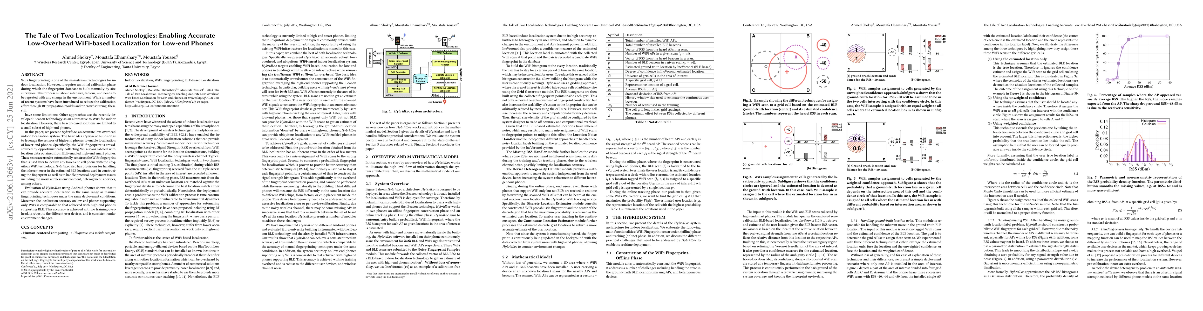 This paper introduces HybridLoc, a low-overhead indoor localization system leveraging high-end phones' BLE sensors to crowdsource WiFi fingerprints for low-end phones, achieving comparable accuracy to manual methods without training overhead.