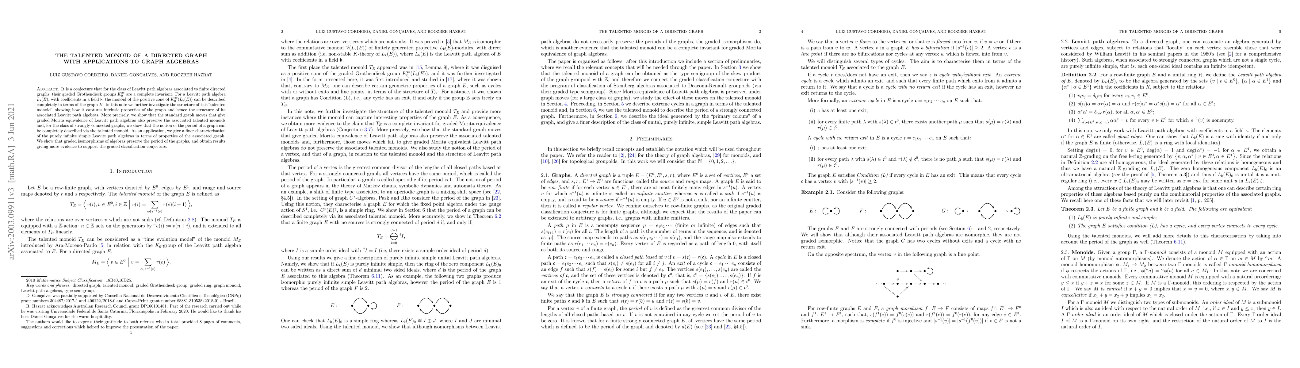 It is a conjecture that for the class of Leavitt path algebras associated to finite directed graphs, their graded Grothendieck groups $K_0^{\mathrm{gr}}$ are a complete invariant. For a Leavitt path algebra $L_{\mathsf k}(E)$, with coefficient in a field ${\mathsf k}$, the monoid of the positive cone of $K_0^{\mathrm{gr}}(L_{\mathsf k}(E))$ can be described completely in terms of the graph $E$. In this note we further investigate the structure of this "talented monoid", showing how it captures intrinsic properties of the graph and hence the structure of its associated Leavitt path algebras. In particular, for the class of strongly connected graphs, we show that the notion of the period of a graph can be completely described via the talented monoid. As an application, we will give a finer characterisation of the purely infinite simple Leavitt path algebras in terms of properties of the associated graph. We show that graded isomorphism of algebras preserve the period of the graphs, and obtain results giving more evidence to the graded classification conjecture.