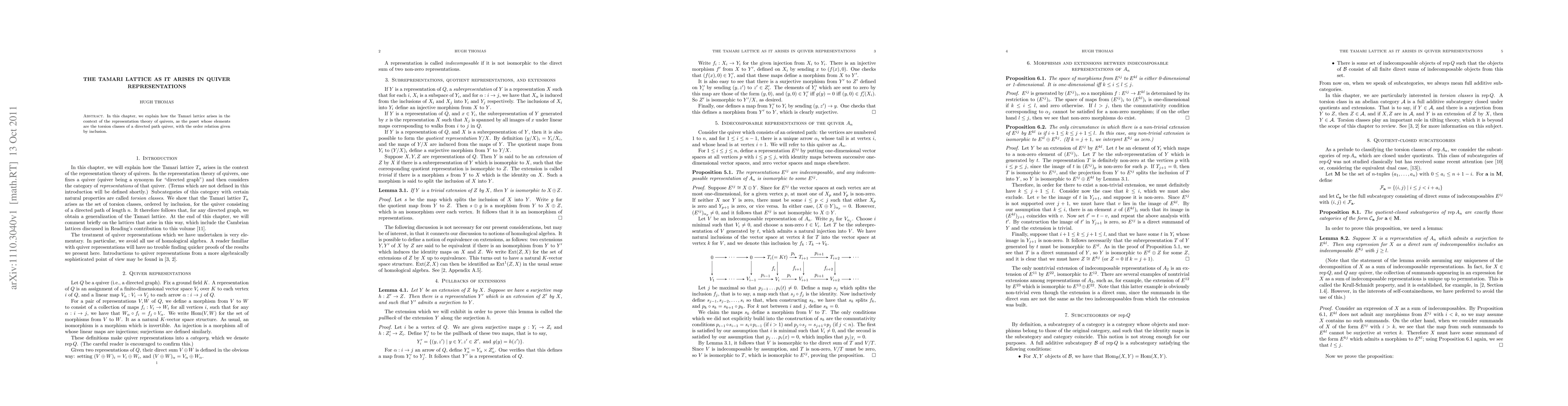 This paper elucidates the connection between the Tamari lattice and quiver representation theory, demonstrating that the lattice's elements correspond to torsion classes of a directed path quiver, with the ordering reflecting class inclusion.