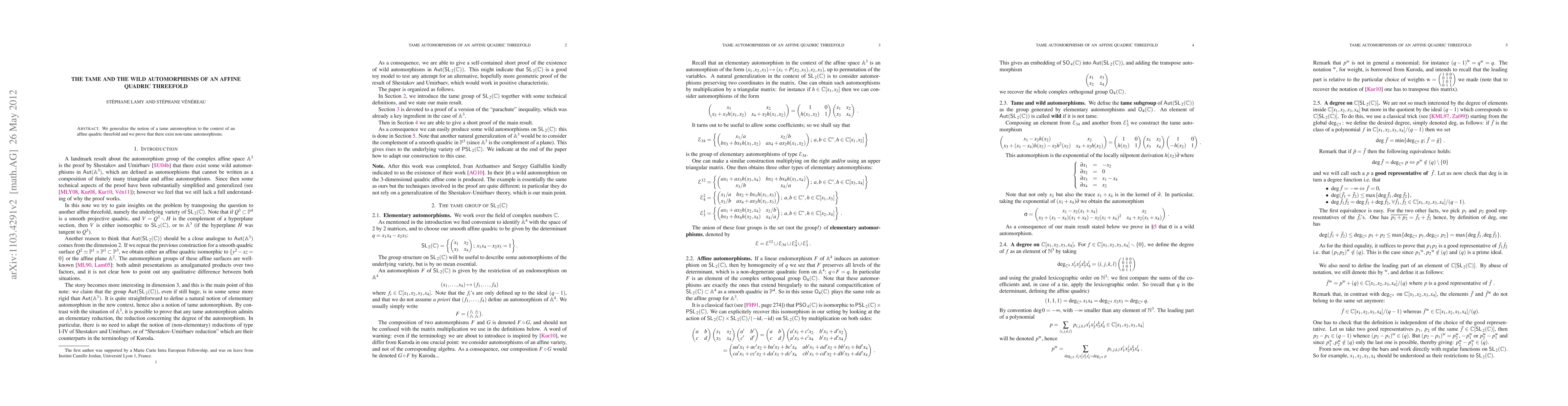 Summary: This paper establishes the existence of wild automorphisms on an affine quadric threefold, employing a modified approach from Shestakov and Umirbaev's method for three-dimensional affine space. The findings extend the understanding of automorphisms in higher-dimensional algebraic structures.
