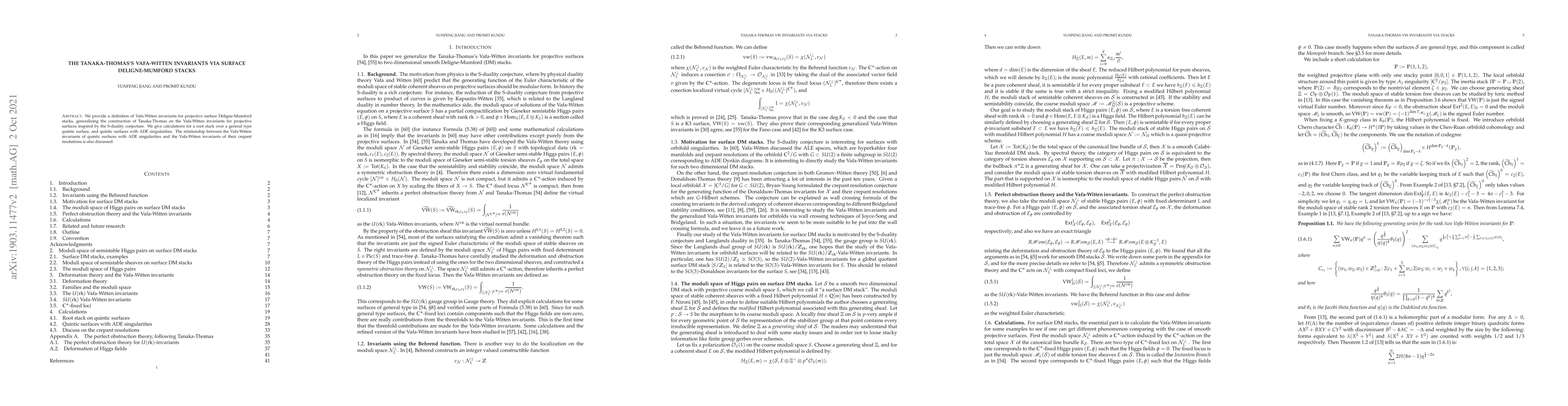 This paper generalizes the Tanaka-Thomas construction of Vafa-Witten invariants for projective surfaces to Deligne-Mumford stacks, with specific calculations for quintic surfaces and their ADE singularities, including a discussion on crepant resolutions.