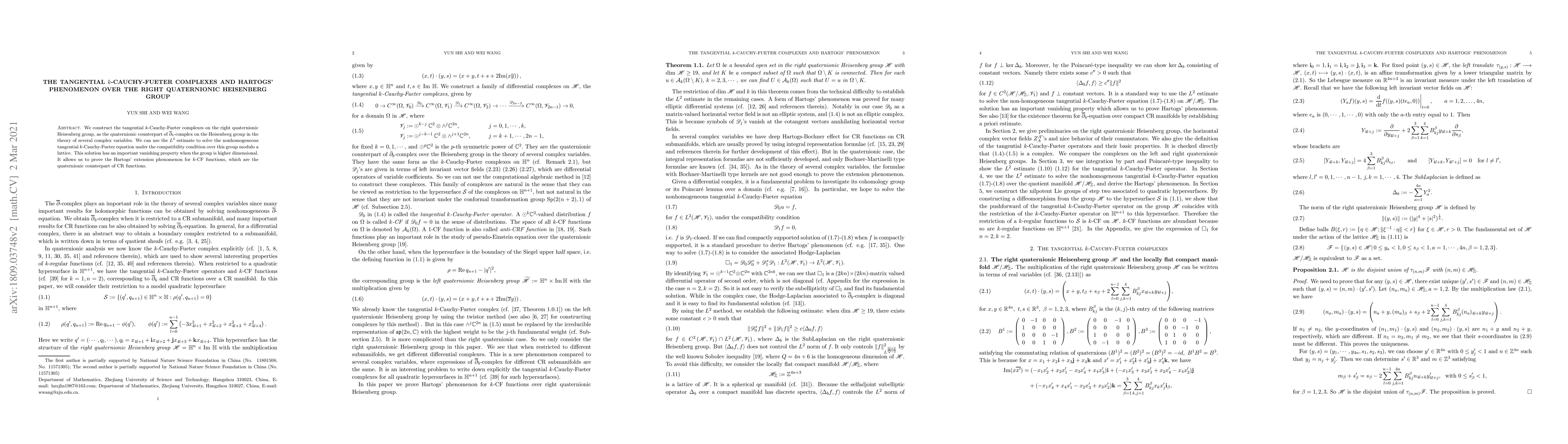 We construct the tangential $k$-Cauchy-Fueter complexes on the right quaternionic Heisenberg group, as the quaternionic counterpart of $\overline{\partial}_b$-complex on the Heisenberg group in the theory of several complex variables. We can use the $L^2$ estimate to solve the nonhomogeneous tangential $k$-Cauchy-Fueter equation under the compatibility condition over this group modulo a lattice. This solution has an important vanishing property when the group is higher dimensional. It allows us to prove the Hartogs' extension phenomenon for $k$-CF functions, which are the quaternionic counterpart of CR functions.