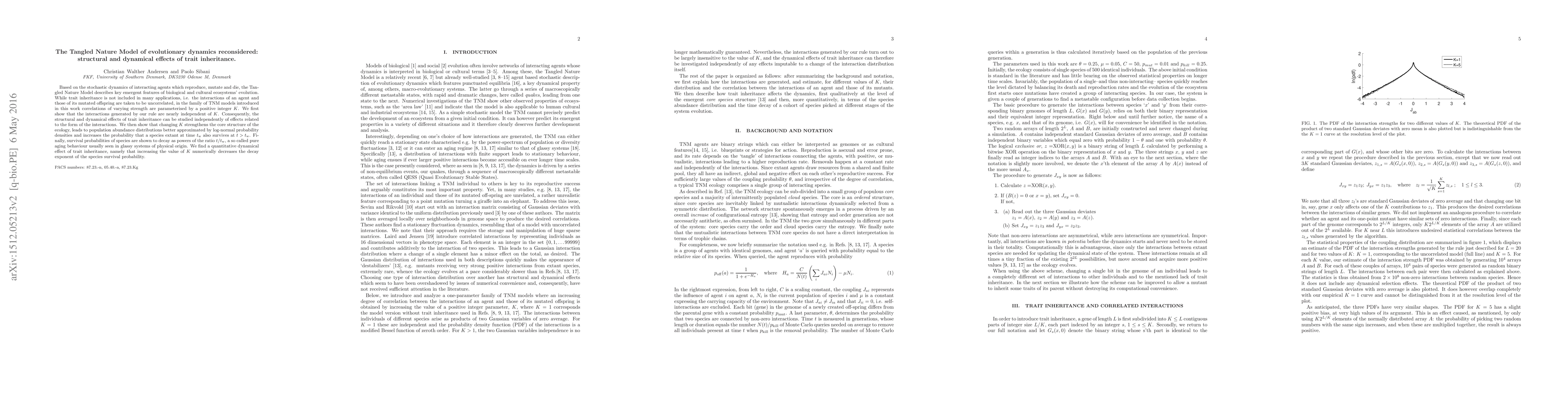 The Tangled Nature Model of biological and cultural evolution features interacting agents which compete for limited resources and reproduce in an error prone fashion and at a rate depending on the `tangle' of interactions they maintain with others. The set of interactions linking a TNM individual to others is key to its reproductive success and arguably constitutes its most important property. Yet, in many studies, the interactions of an individual and those of its mutated off-spring are unrelated, a rather unrealistic feature corresponding to a point mutation turning a giraffe into an elephant. To bring out the structural and dynamical effects of trait inheritance , we introduce and numerically analyze a family of TNM models where a positive integer $K$ parametrises correlations between the interactions of an agent and those of its mutated offspring. For $K=1$ a single point mutation randomizes all the interactions, while increasing $K$ up to the length of the genome ensures an increasing level of trait inheritance. We show that the distribution of the interactions generated by our rule is nearly independent of the value of $K$. Changing $K$ strengthens the core structure of the ecology, leads to population abundance distributions which are better approximated by log-normal probability densities and increases the probability that a species extant at time $t_{\rm w}$ is also extant at a later time $t$. In particular, survival probabilities are shown to decay as powers of the ratio $t/t_{\rm w}$, similarity to the pure aging behaviour approximately describing glassy systems of physical origin. Increasing the value of $K$ decreases the numerical value of the decay exponent of the power law, which is a clear quantitative dynamical effect of trait inheritance.